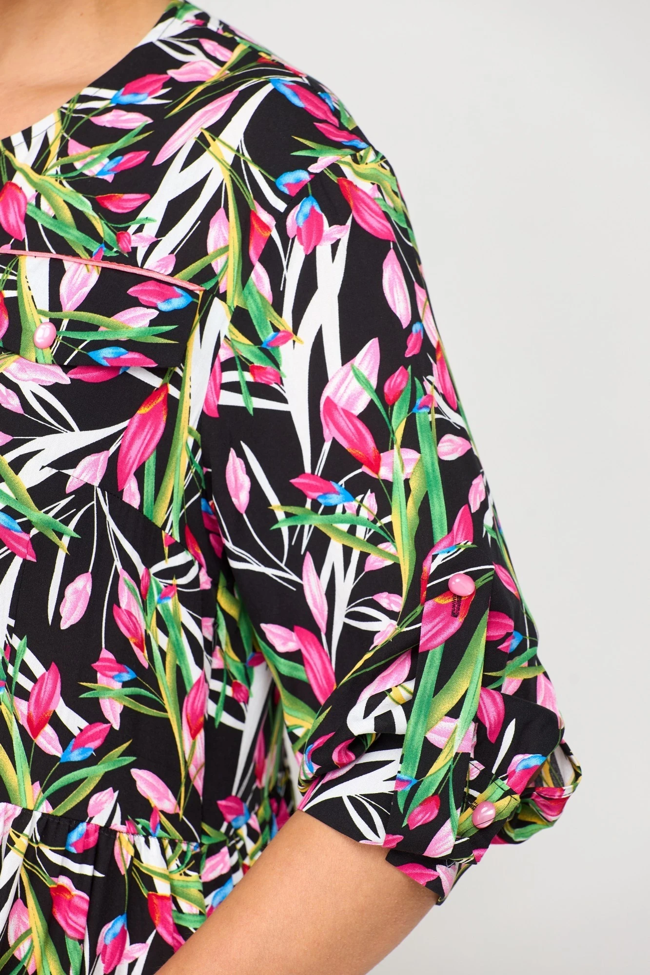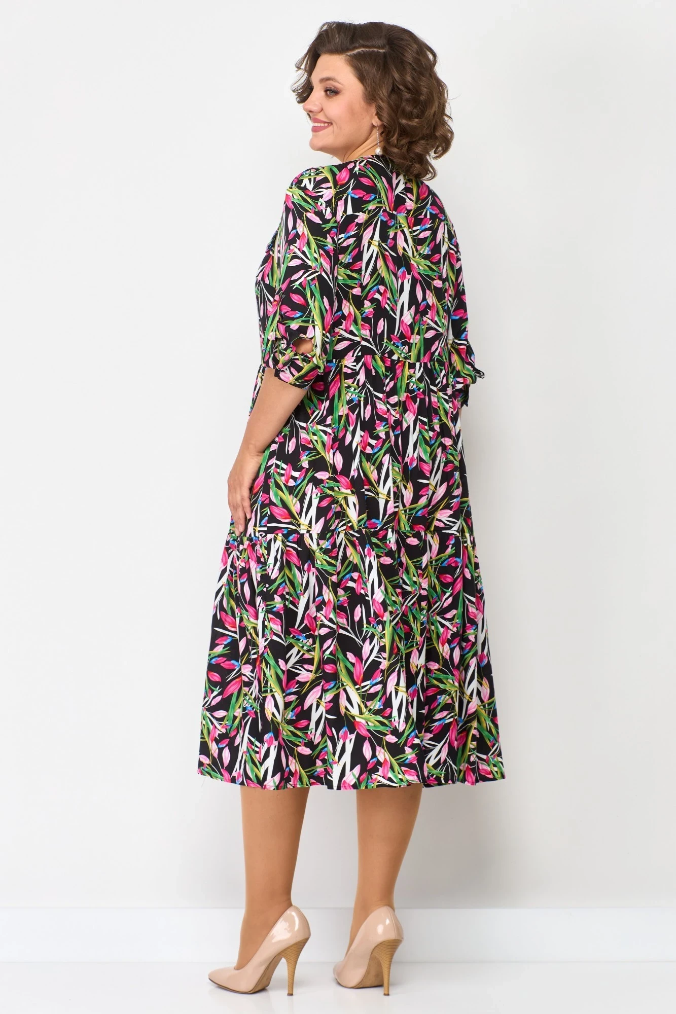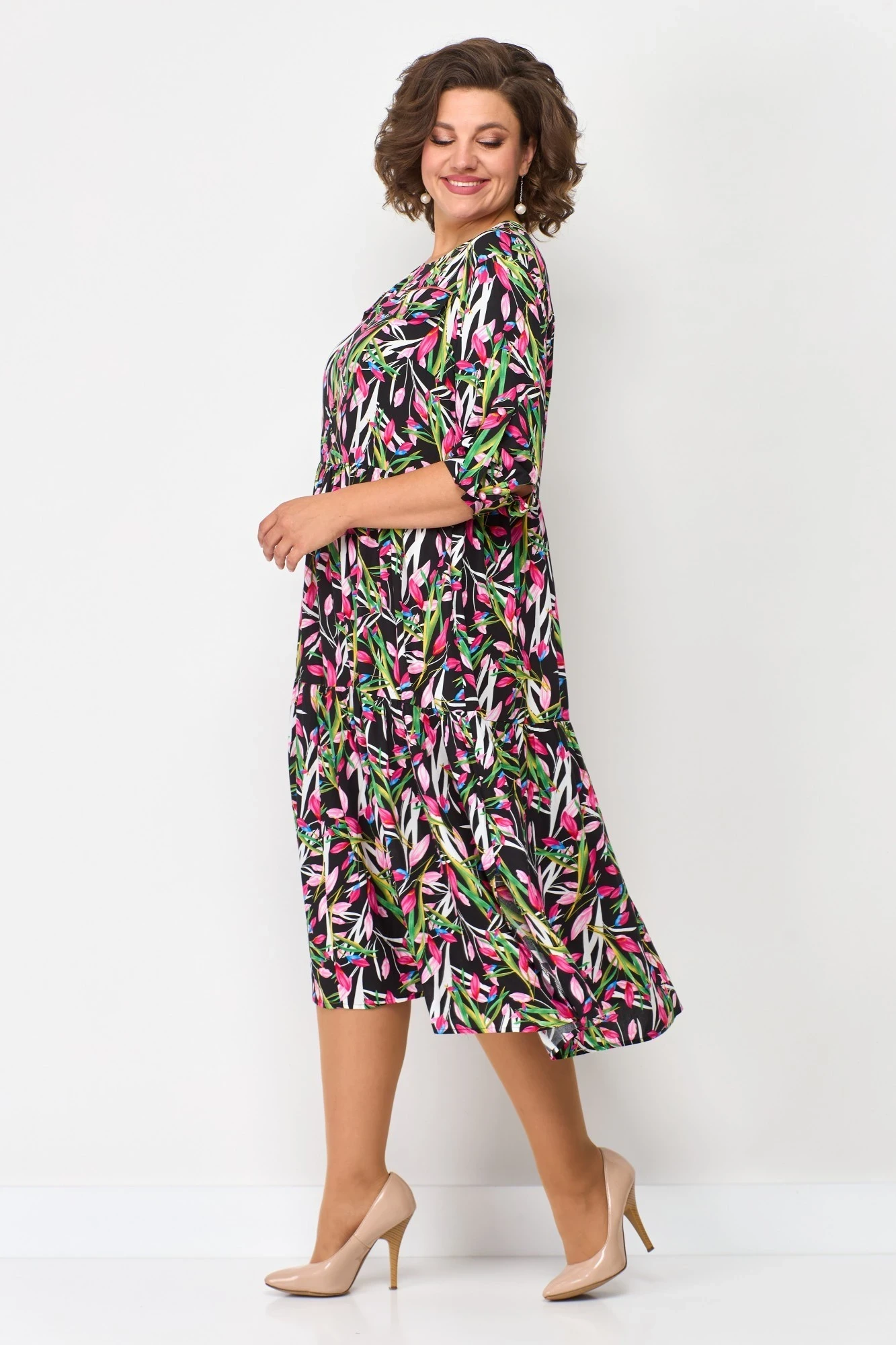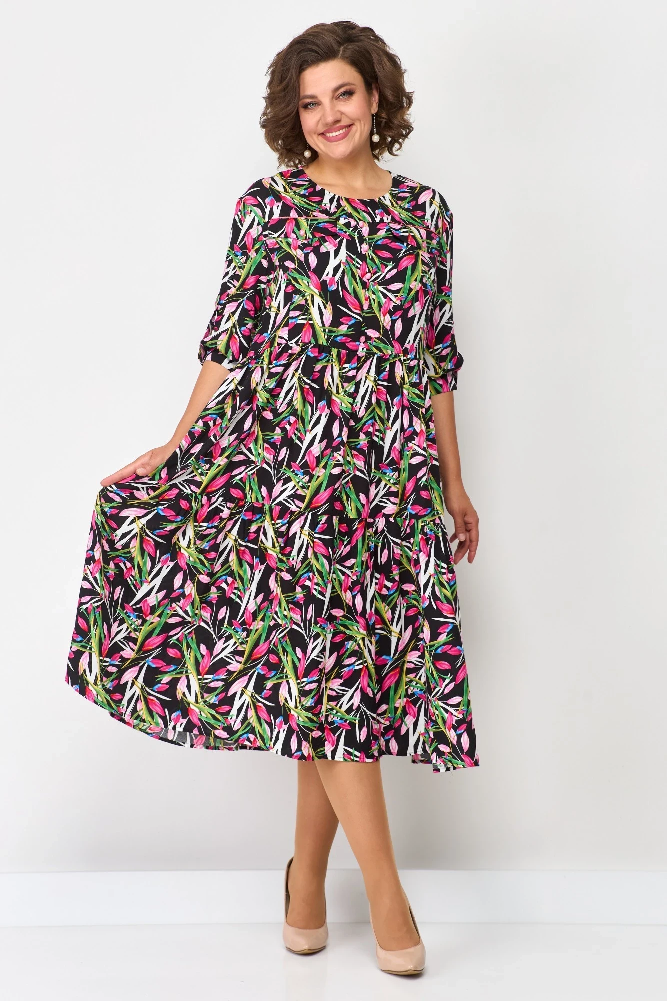 Платье женское стиль бохо (свободного) кроя. Подойдет для женщин любого возраста, которые ценят свободу в движении, легкость. Горловина круглая, по передней части полочки кокетка, в которую вшиты клапаны кармана. Карман обманка, отделочный кант выделяет кокетку. По переду полочки средний шов с пуговками. По линии талии отрезное. Нижняя часть изделия с широким валаном. Спинка отрезная по талии, низ с валаном. Рукав 3/4 с манжетой на 2-х пуговках. Подойдет для каждодневной носки и праздника. Размеры 50-52-54-56-58. Длина платья по спинке 114-114-116-116-116 см. Бережная стирка при 30 градусах!