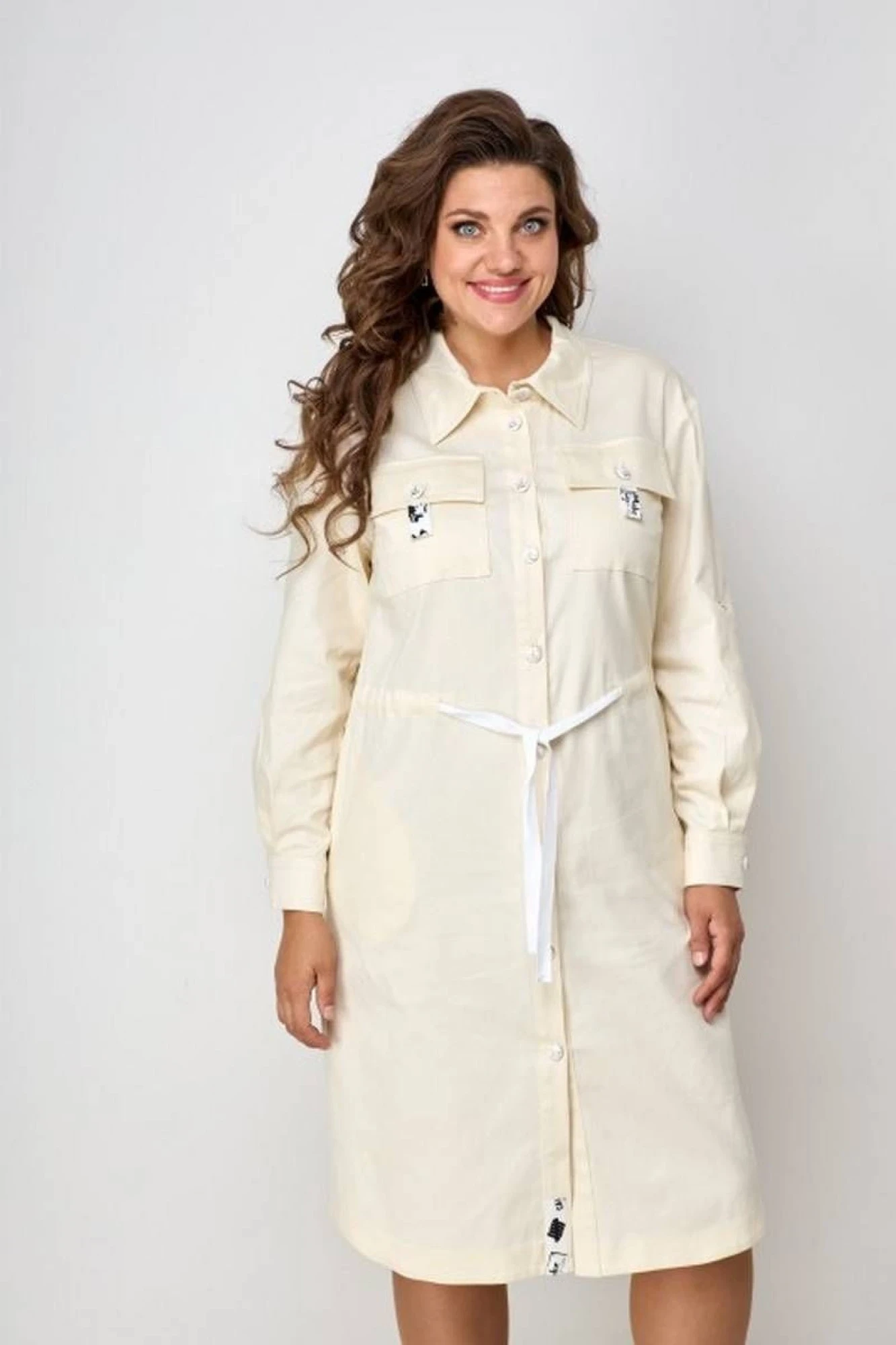 Молодежная модель (платье-рубашка) для современнных женщин. Изделие свободного кроя, по линии талии кулиска, которая регулирует линию талии с помощью шнура. По центру полочки разъемная планка на пуговицах, воротник рубашечного типа на стойке. По полочке выше уровня груди накладные карманы с клапаном , также еще два кармана в боковом шве. Спинка изделия с кокеткой и средним швом по центру. Низ платья фигурный. Длина рукава регулируется патой. Изделин выполнено из джинсовой ткани Тифани.