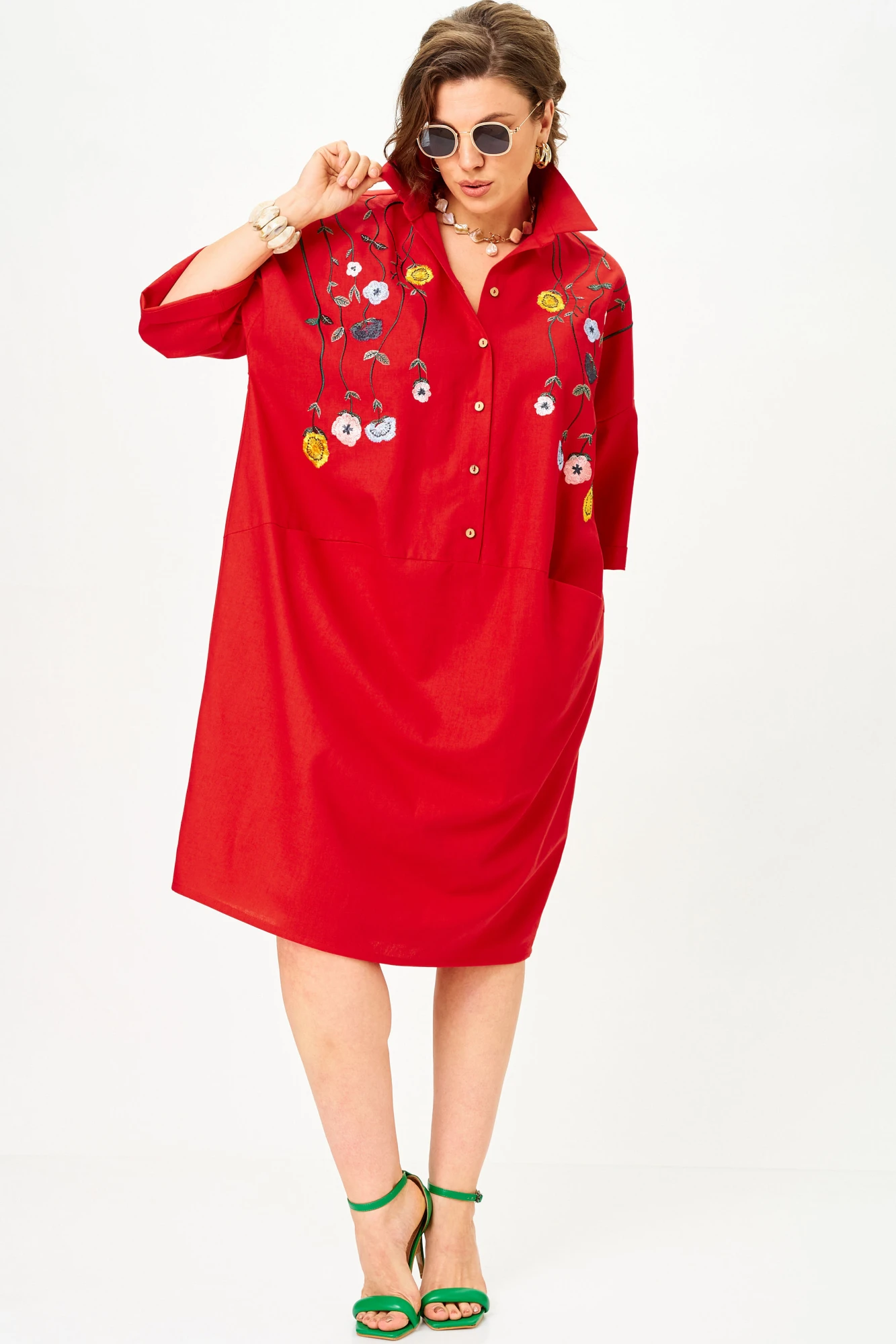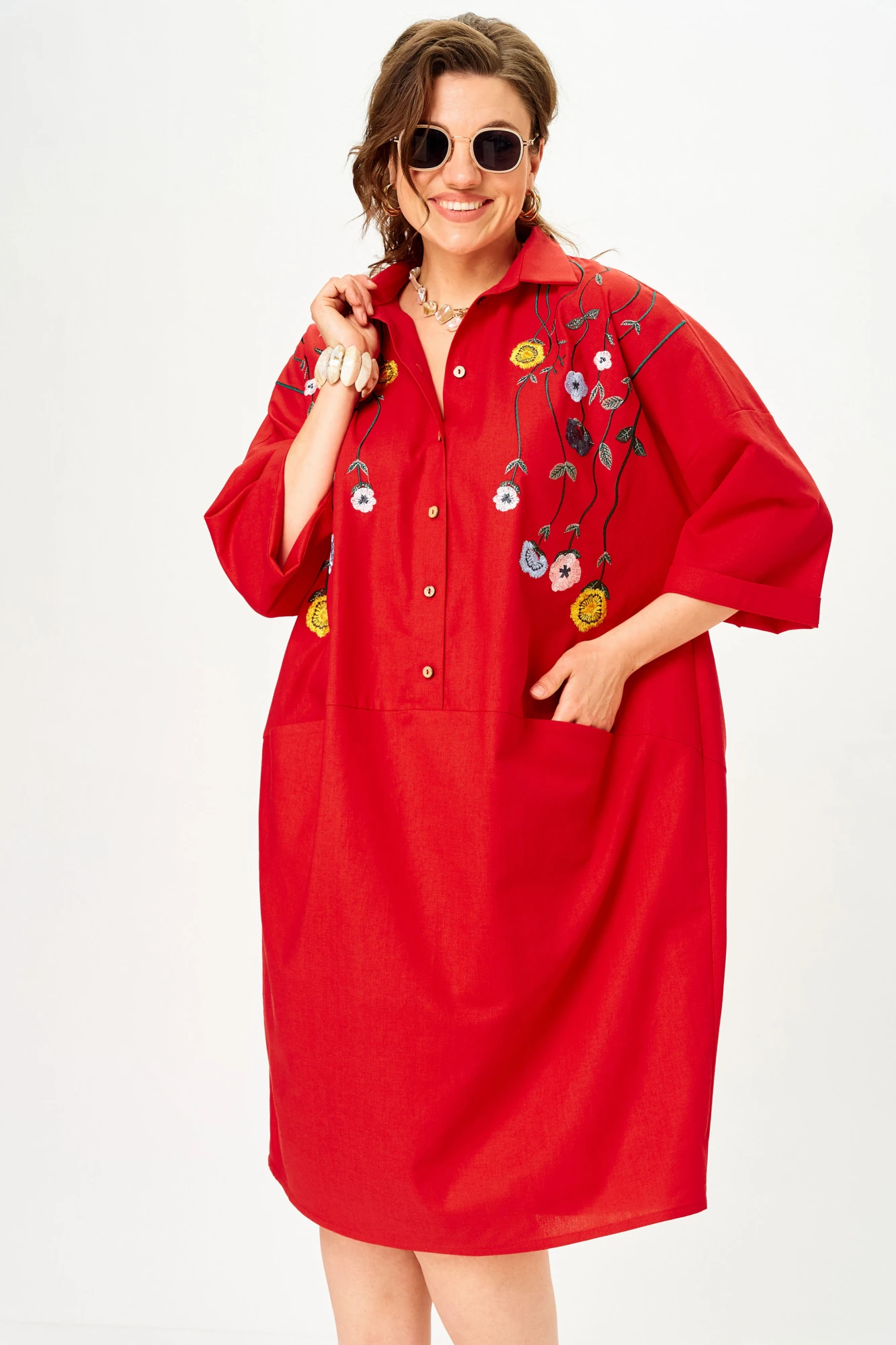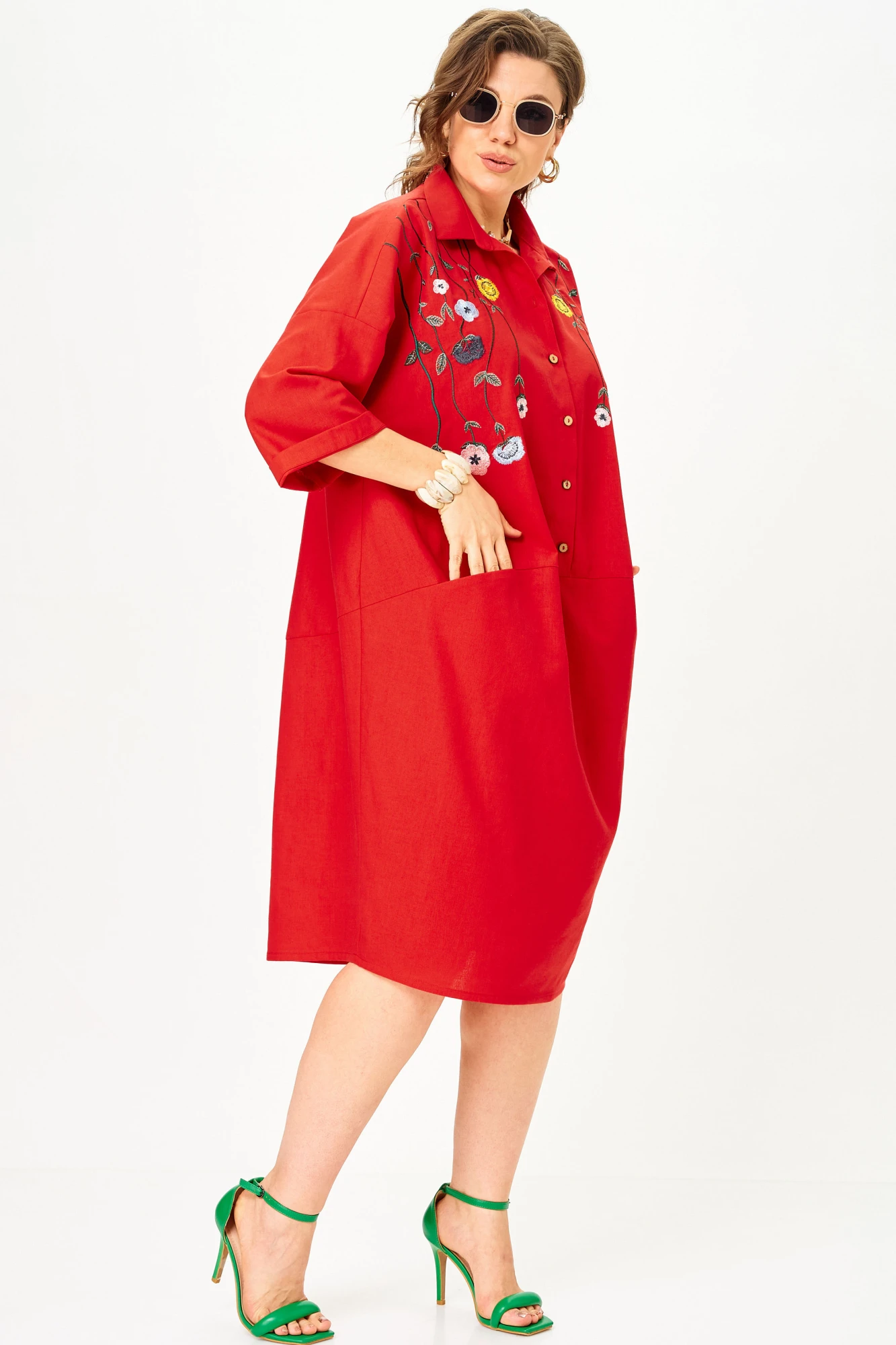Удивительно комфортное для жаркого лета. Такого плана платья называют " баллонами". Цветочная авторская вышивка подчеркивает аутентичный стиль.
