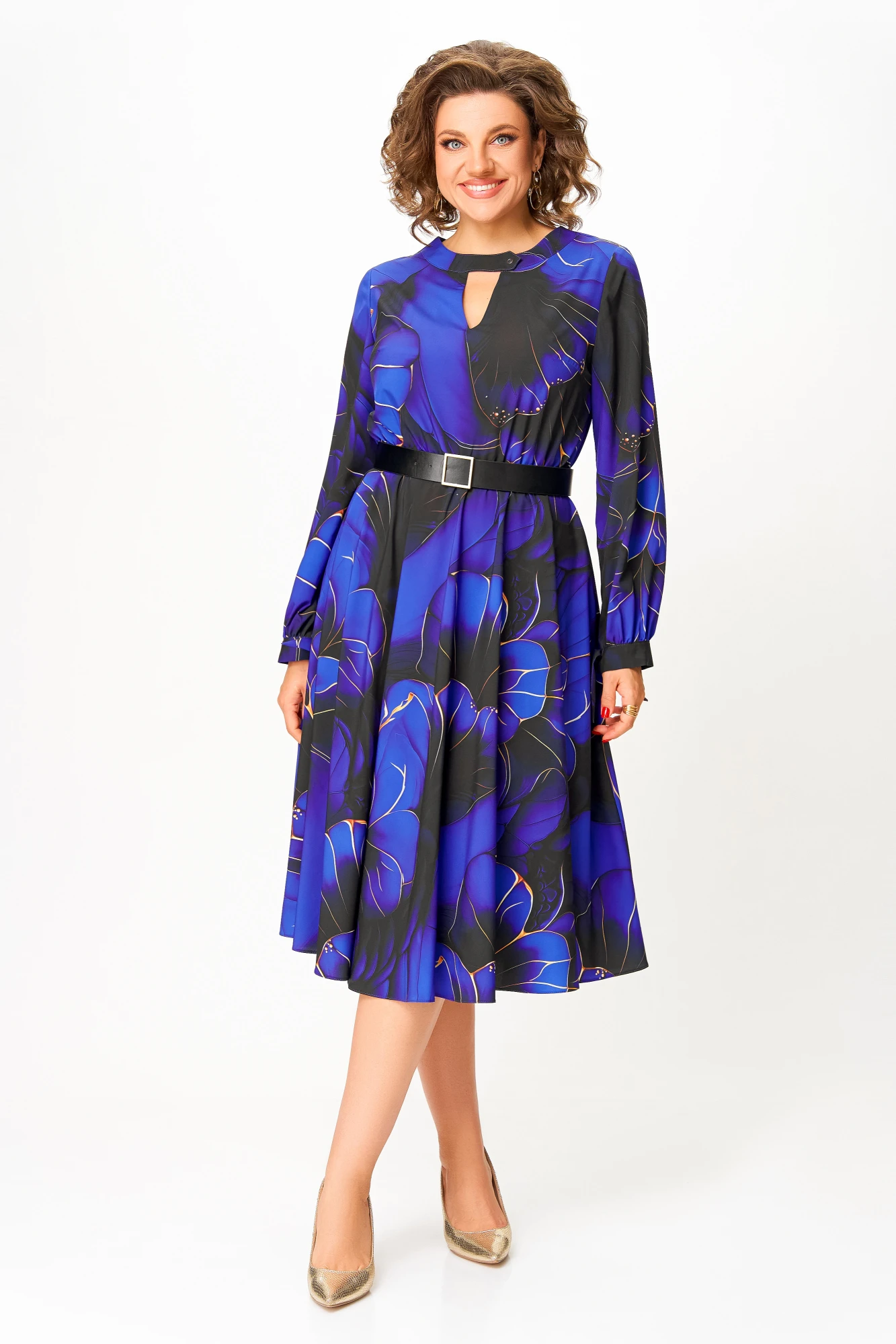 Платье Swallow 679.4 Ультрамарин, принт «чёрно- золотые цветы»