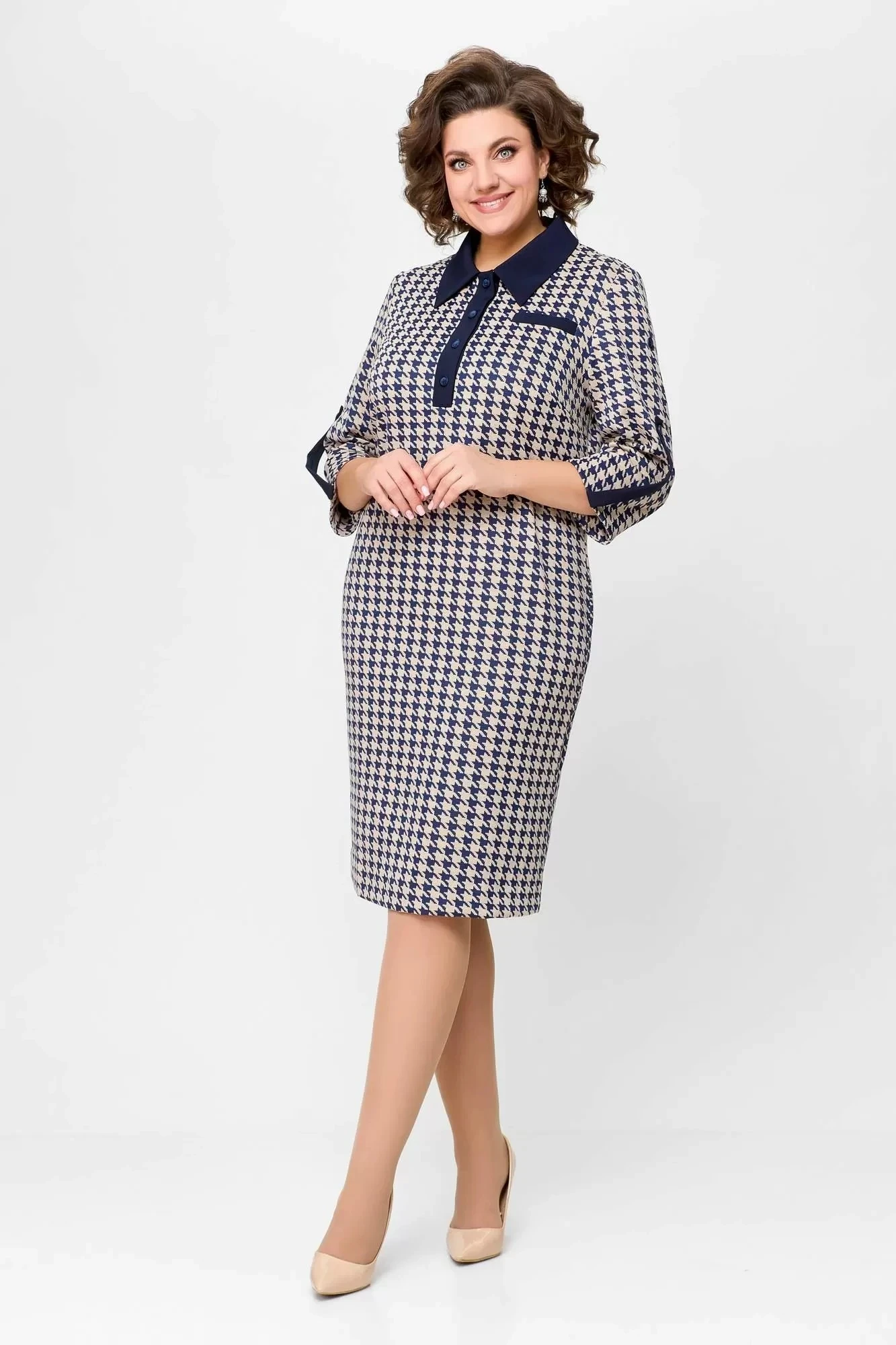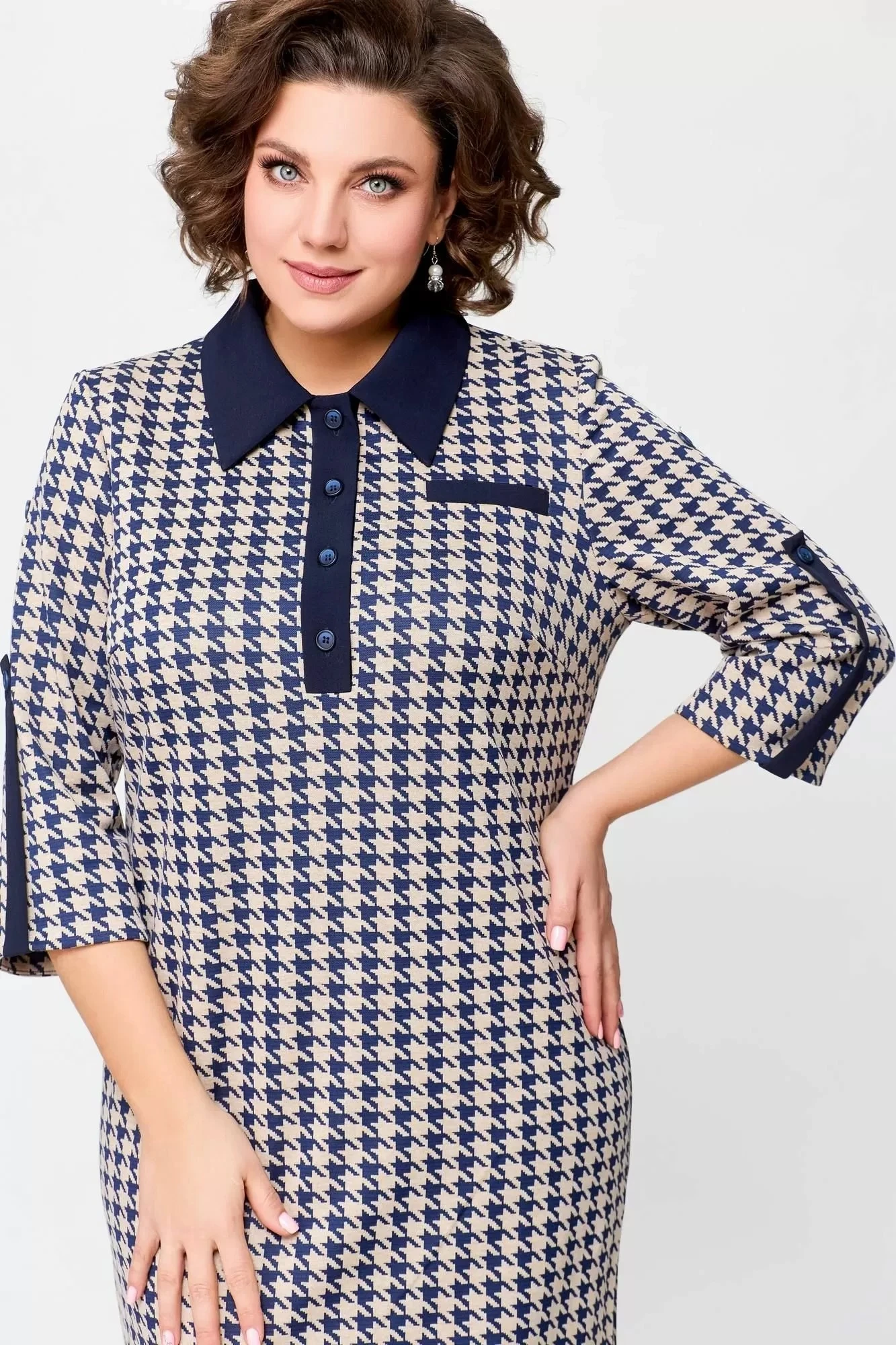 Платье Swallow 697 Сине-бежевая «гусиная лапка».