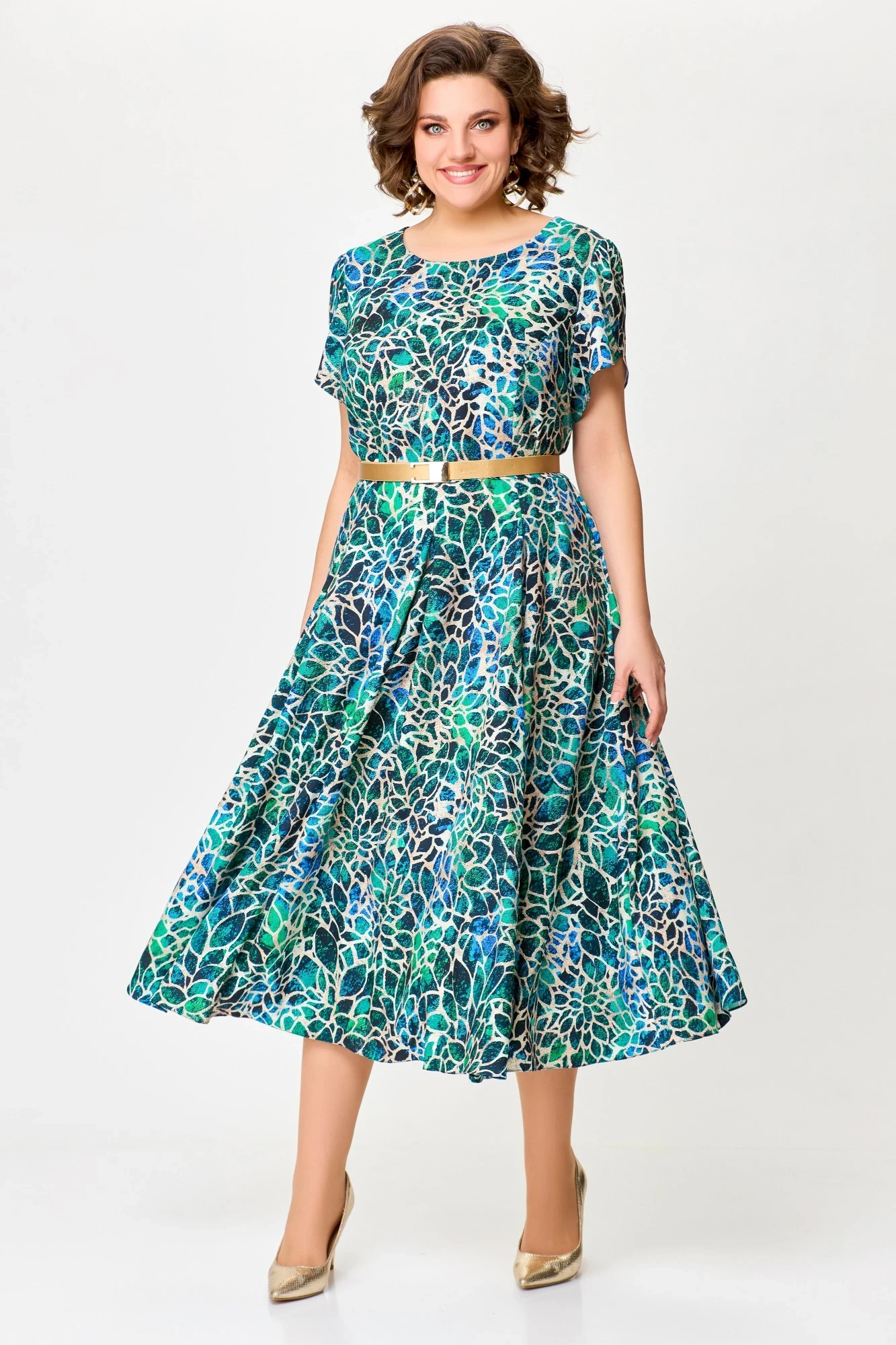 Длинное платье из вискозы Swallow 725 Бирюзово-бежевый принт