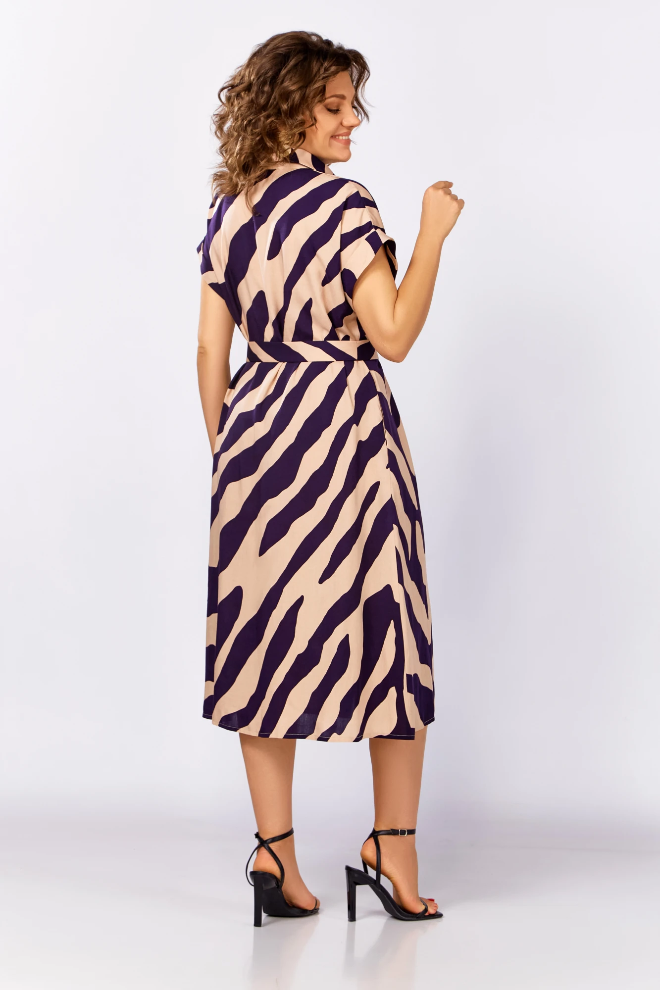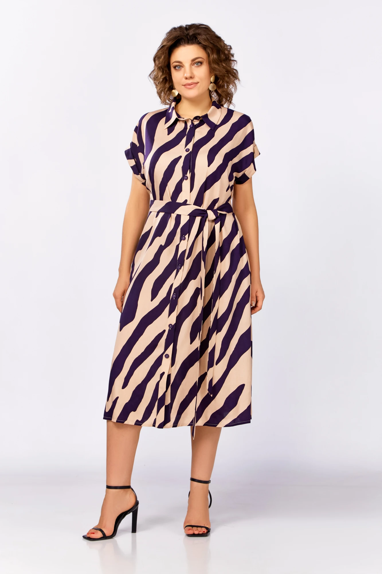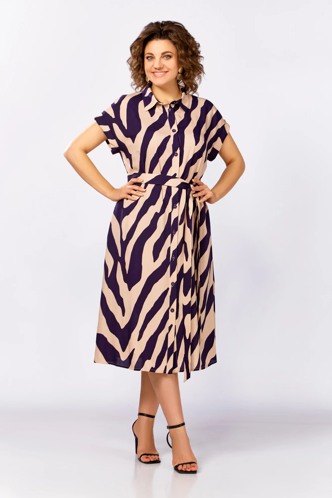 Платье Swallow 740.2 Нежно-кремовый в тёмно-фиолетовый принт