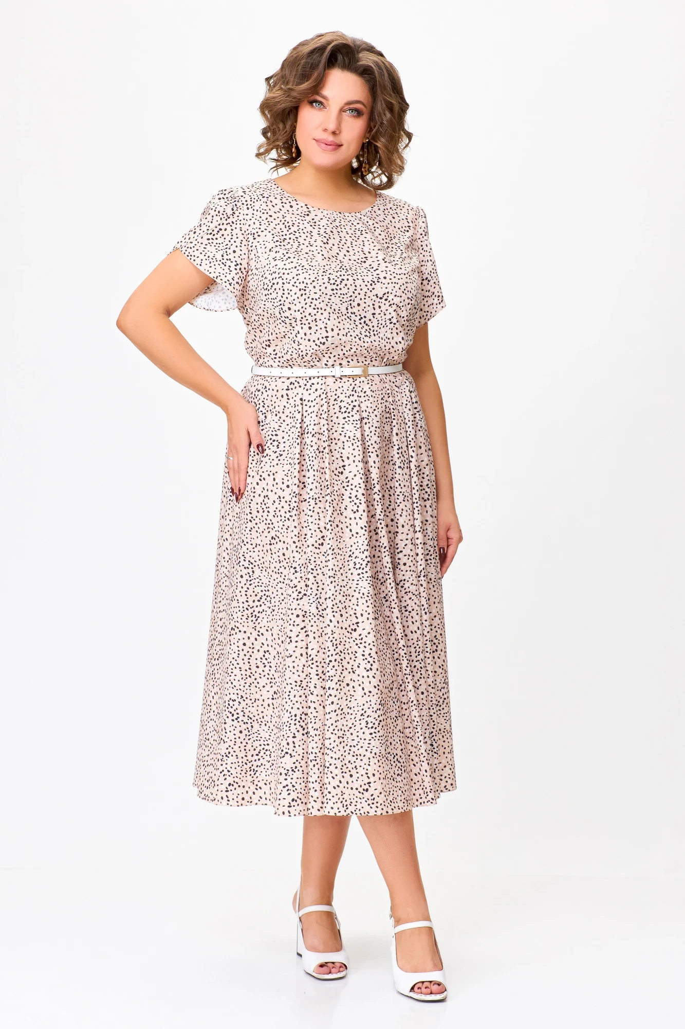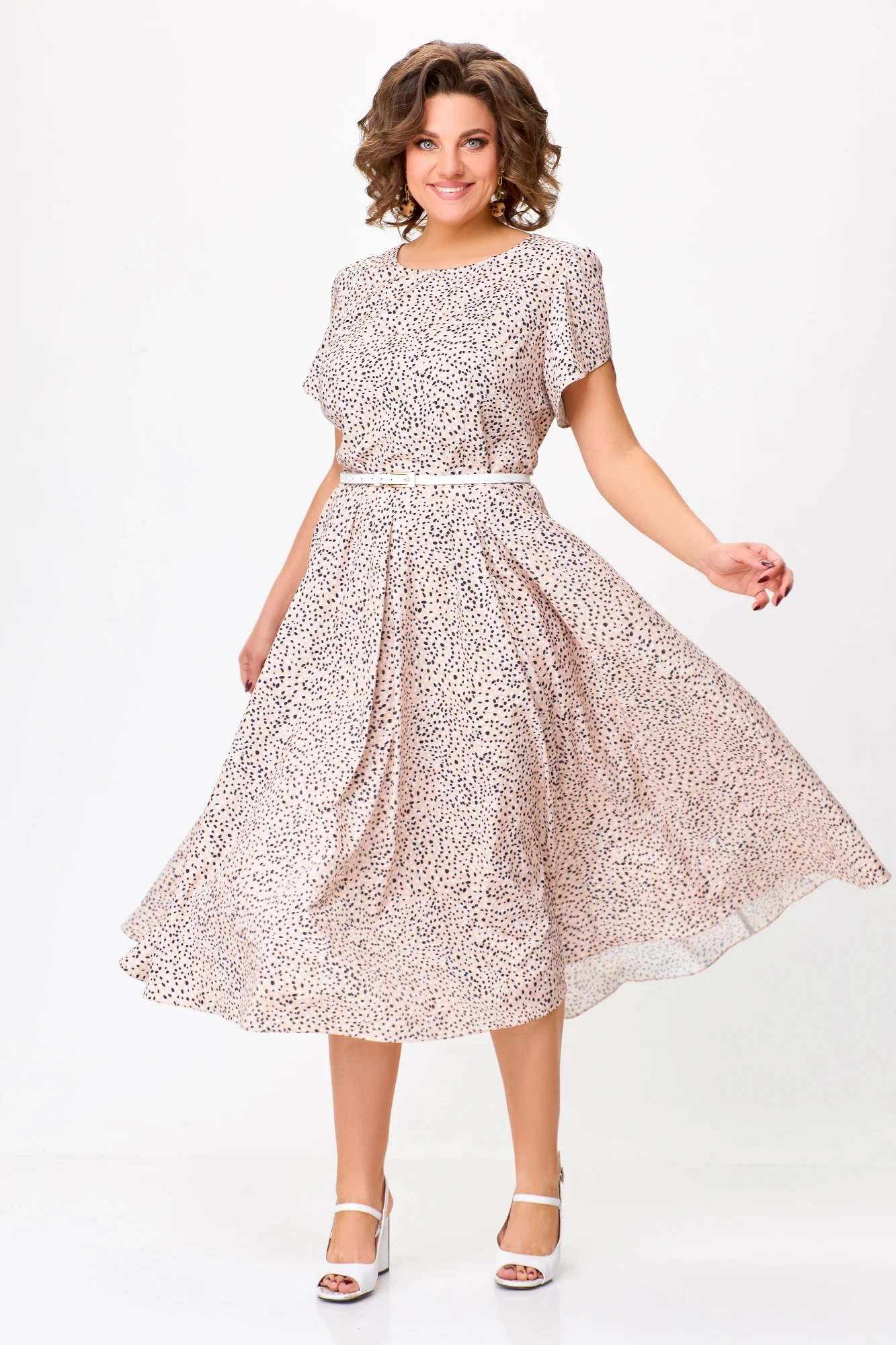 Платье Swallow 756 Бежевый/бежевые и чёрные камушки