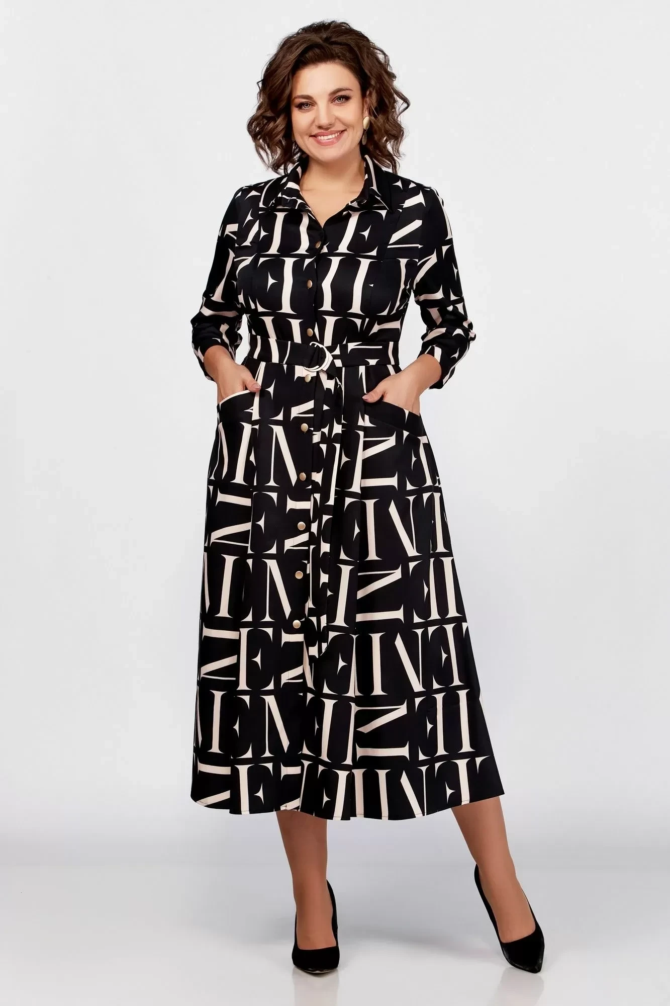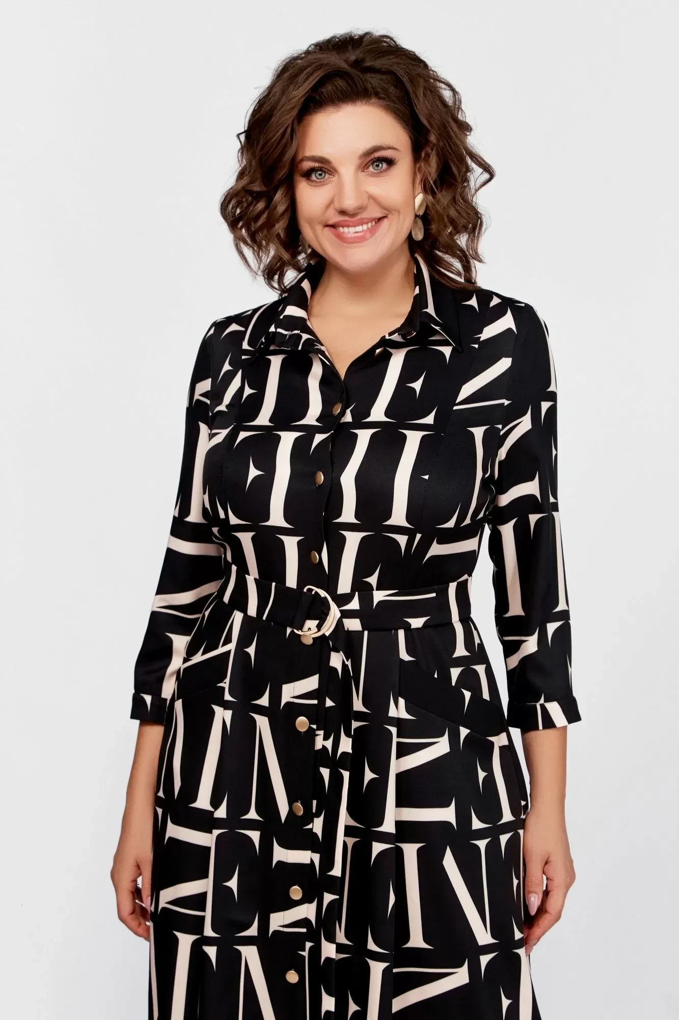 Платье Swallow 784 чёрный/принт бежевые буквы