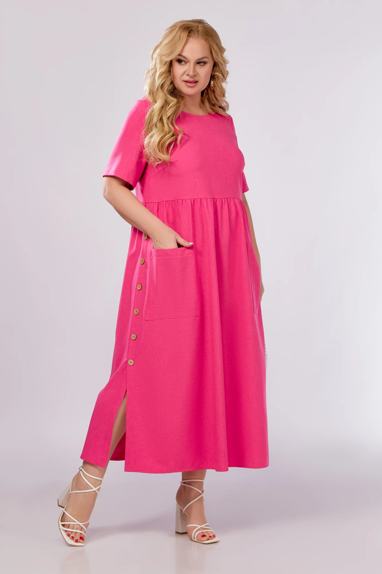 Платье из вискозно-льняной ткани прямого силуэта длиной миди. Платье с отрезной, слегка завышенной линией талии и сборкой по юбке.
