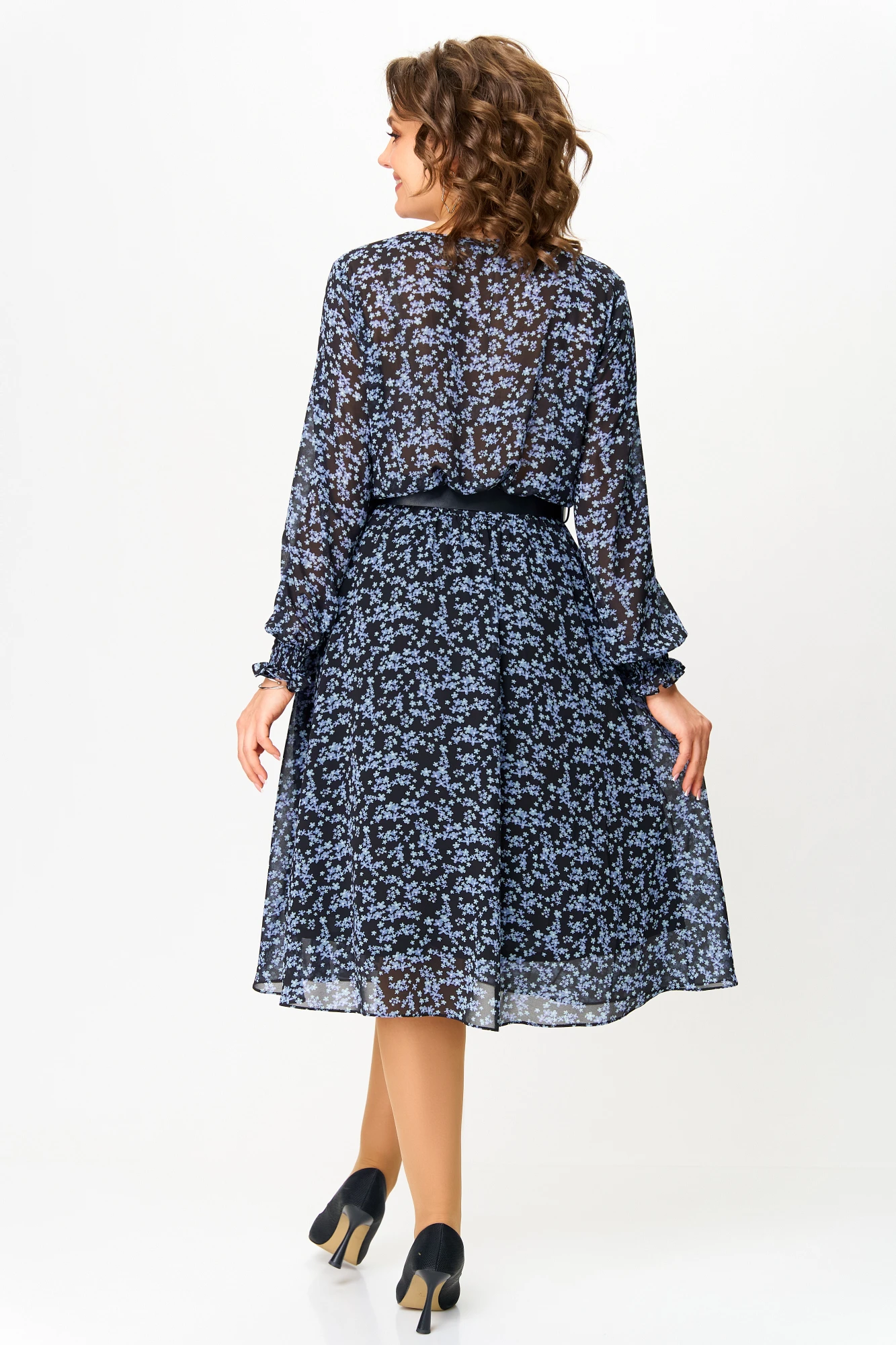 Платье Swallow 819 Черный, принт «голубые незабудки»
