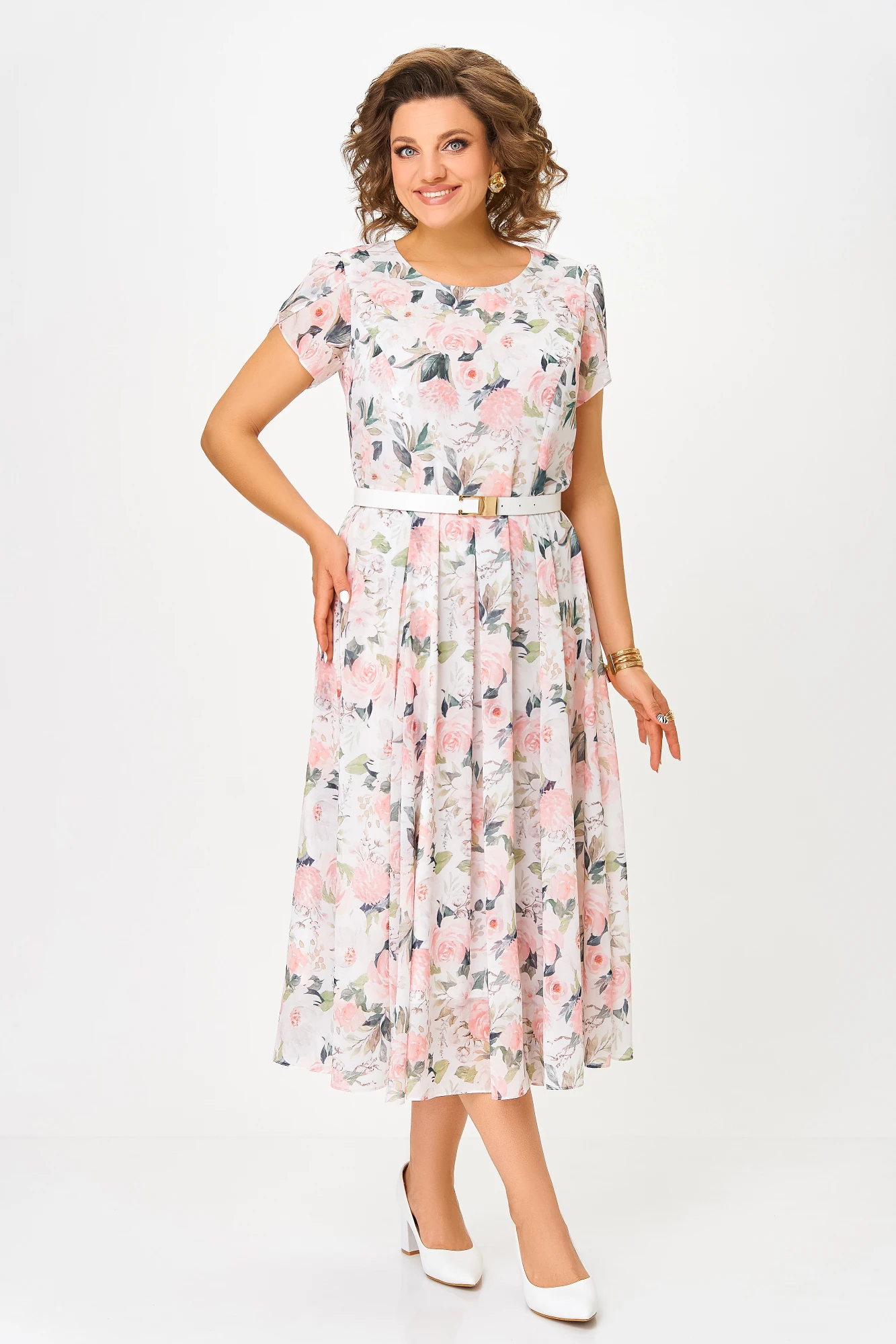Платье Swallow 843.5 Молочный, принт_розово-молочные_цветы