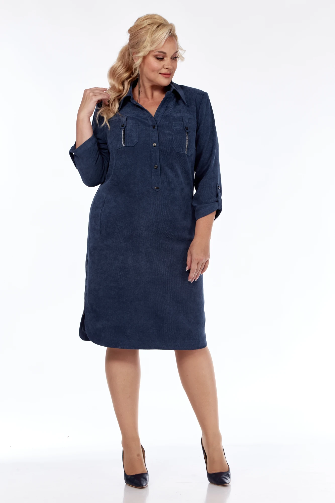 Современное вельветовое платье в стиле сафари — отличный выбор для Вашего гардероба в любое время года. Платье слегка расширено к низу. На переде обработаны два кармана c листочками, два накладных кармана в области груди с отделочной тесьмой, застёжка на 3 петли и пуговицы. Спинка слегка удлинена по отношению к переду, боковой шов с отделочной вставкой, декорированной тесьмой с полукольцом, и полукруглыми разрезами внизу. Рукав втачной, одношовный, внизу присобран патой. Воротник стояче-отложной со стойкой. Фурнитура может отличаться от представленной на фото.