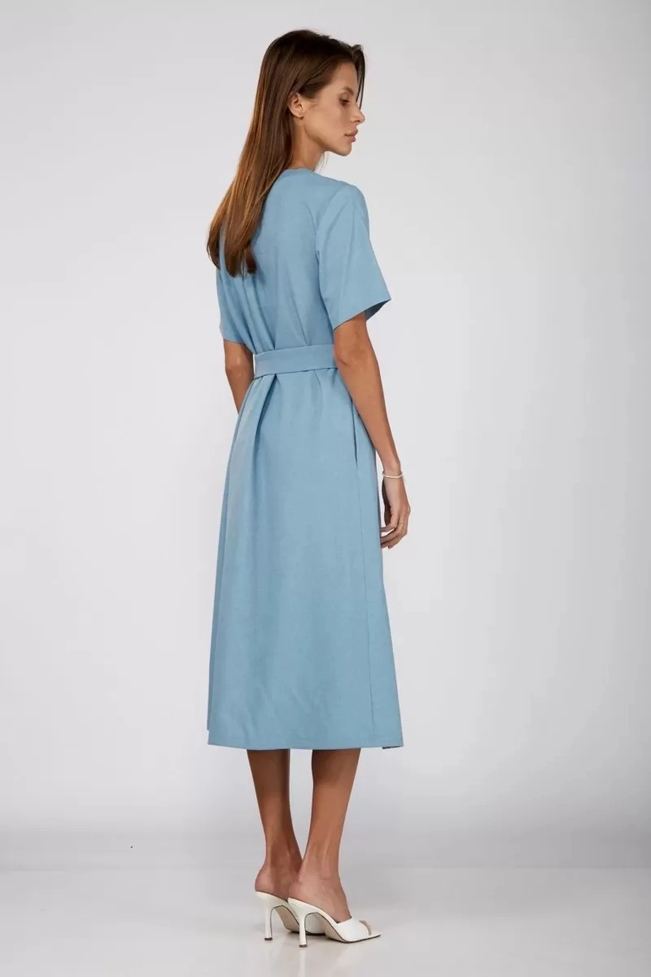 Платье с карманами в боковых швах и поясом. Пояс съемный в комплекте. Такое платье выберут женщины, умеющие носить лаконичные, базовые вещи таким образом, чтобы они подчеркнули их тонкий вкус и умение создавать незабываемый образ с помощью простого кроя и несложного для восприятия цвета.Длина платья – 117 см