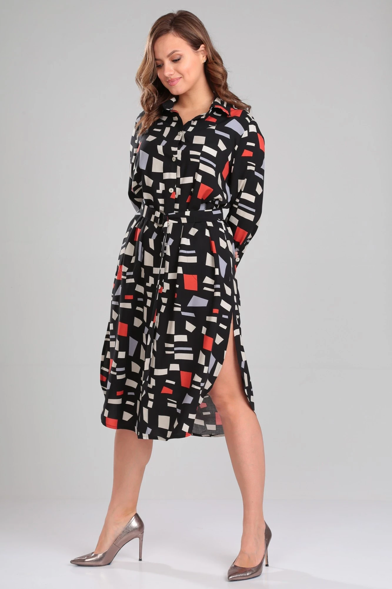 Платье YOUR SIZE 2184 Цветной принт на черном