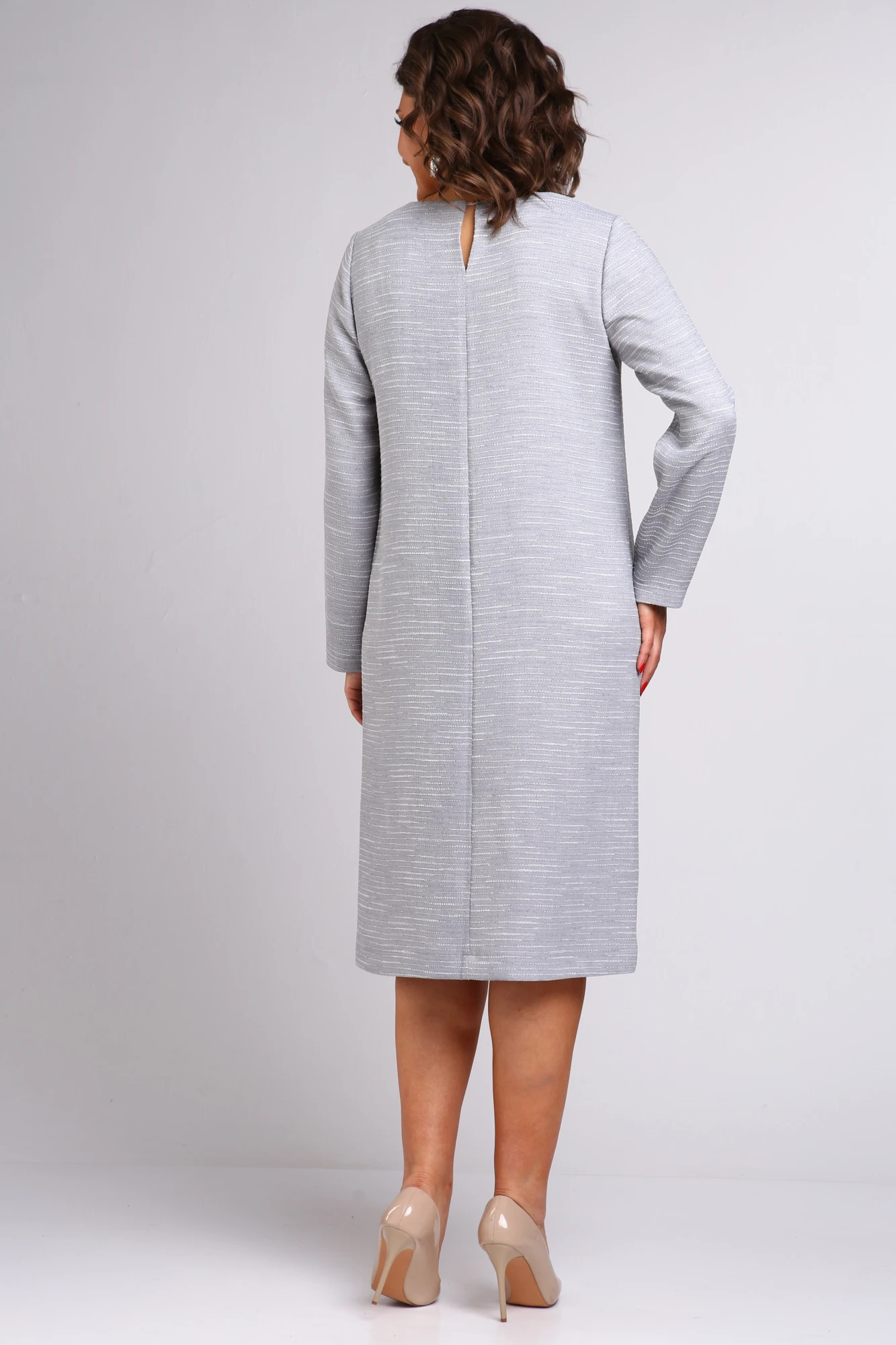 Элегантное платье прямого силуэта. Горловина округлая. Рукав втачной. . Застегивается сзади на пуговицу. Платье декорировано брошью, что придает неповторимый шарм и делает его более нарядным. Платье замечательно подойдет как для повседневной носки, так и для более формальных мероприятий.