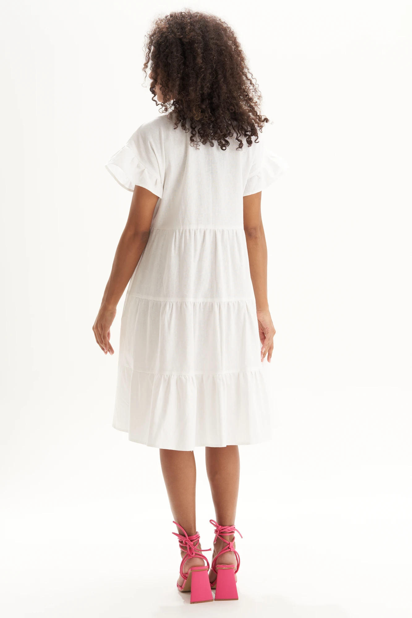 Длина по середине спинки - 97,5 см (±2,0 см), Длина лифа спинки - 34,5 см (±1,0 см), Ширина на уровне глубины проймы - 50,0 см (±1,0 см), Ширина по шву притачивания юбки к лифу - 45,0 см (±1,5 см), Длина плеча - 22,5 см (±1,0 см), Длина рукава - 7,5 см.