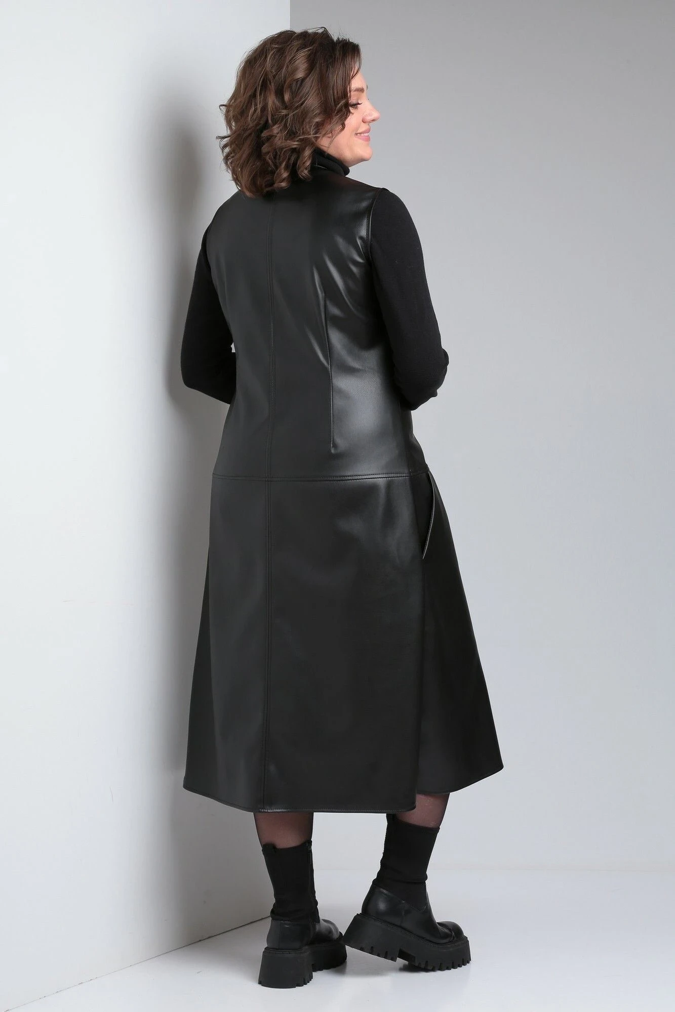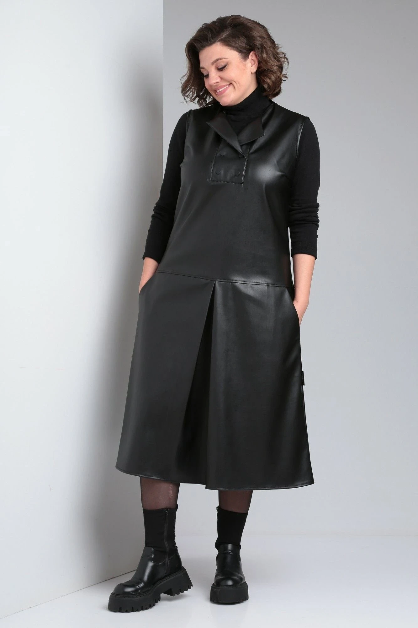 Сарафан выполнен из экокожи высокого качества, изнанка в ткани - замш. Ткань тянется. Кнопки на сарафане металлические.