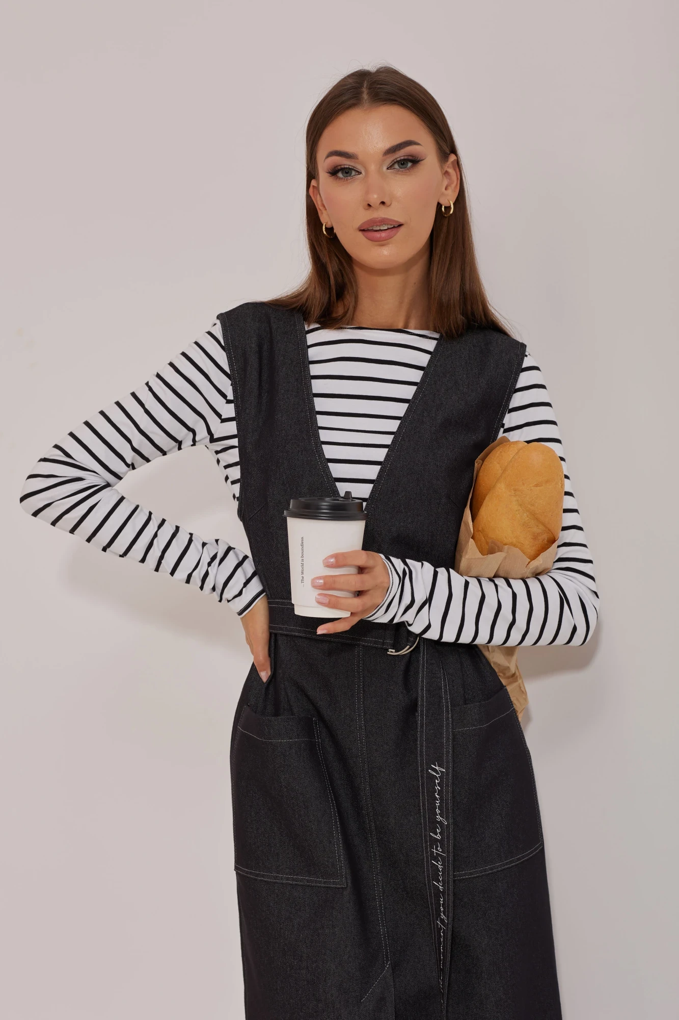 Сарафан прямого силуэта из джинсовой ткани. Горловина V-образной формы, на спинке декоративный элемент с поясом и полукольцами. По переду и спинке средний шов, по среднему шву переда в нижней части шлица. По переду накладные функциональные карманы. В комплект входит съемный пояс. На съемном поясе и пояске по спинке предусмотрена дизайнерская печать. Обращаем ваше внимание, что фурнитура может незначительно отличаться от фото.