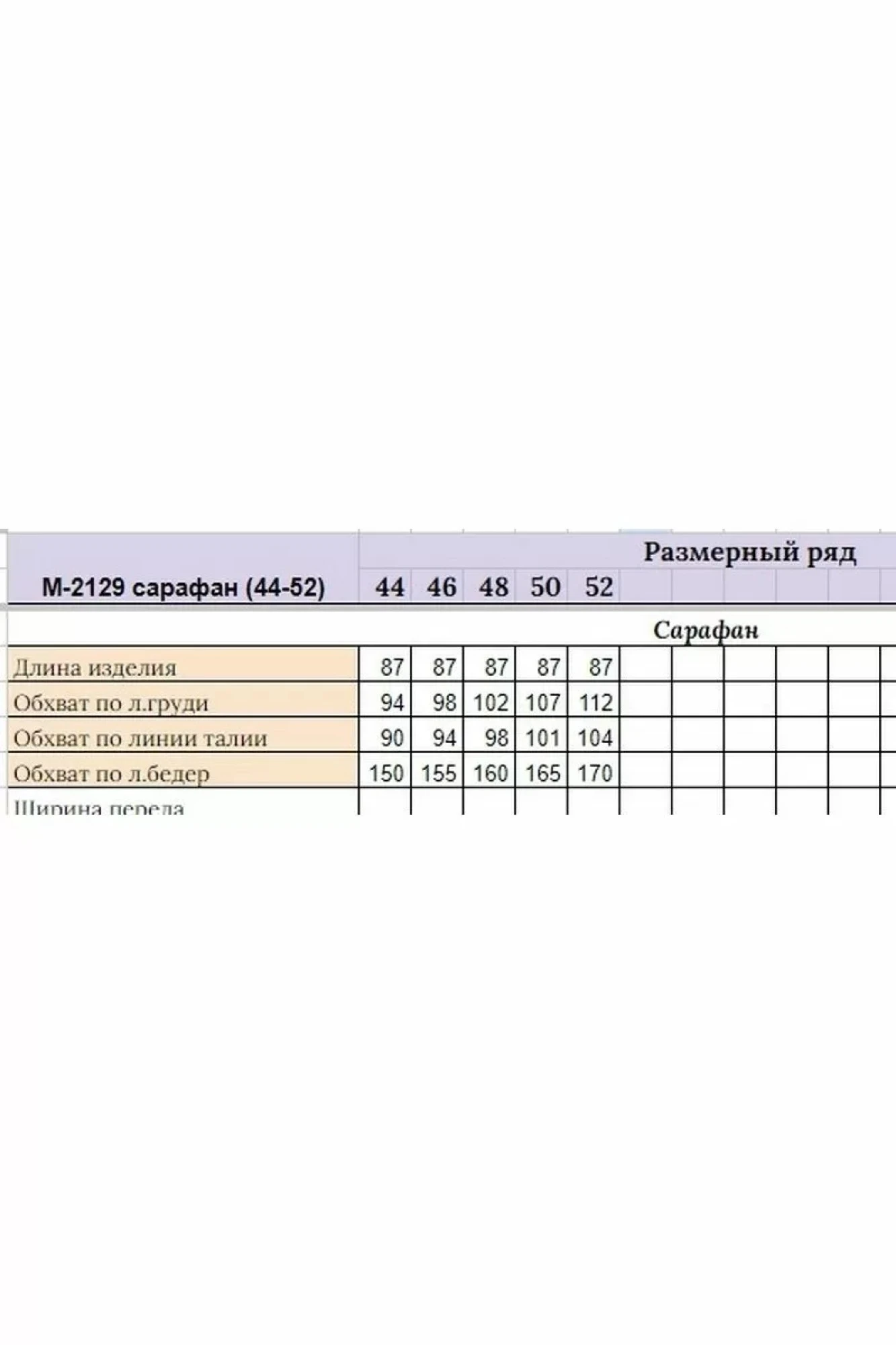 Таблица размеров
