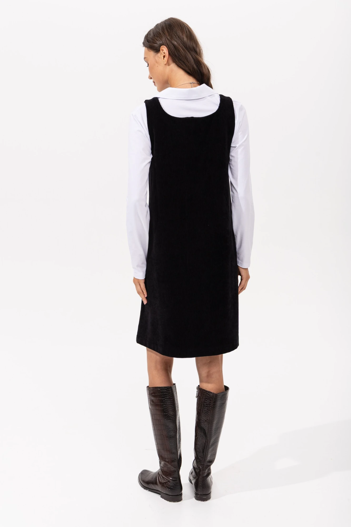 Стильный сарафан-комбинезон из вельвета с пуговицами