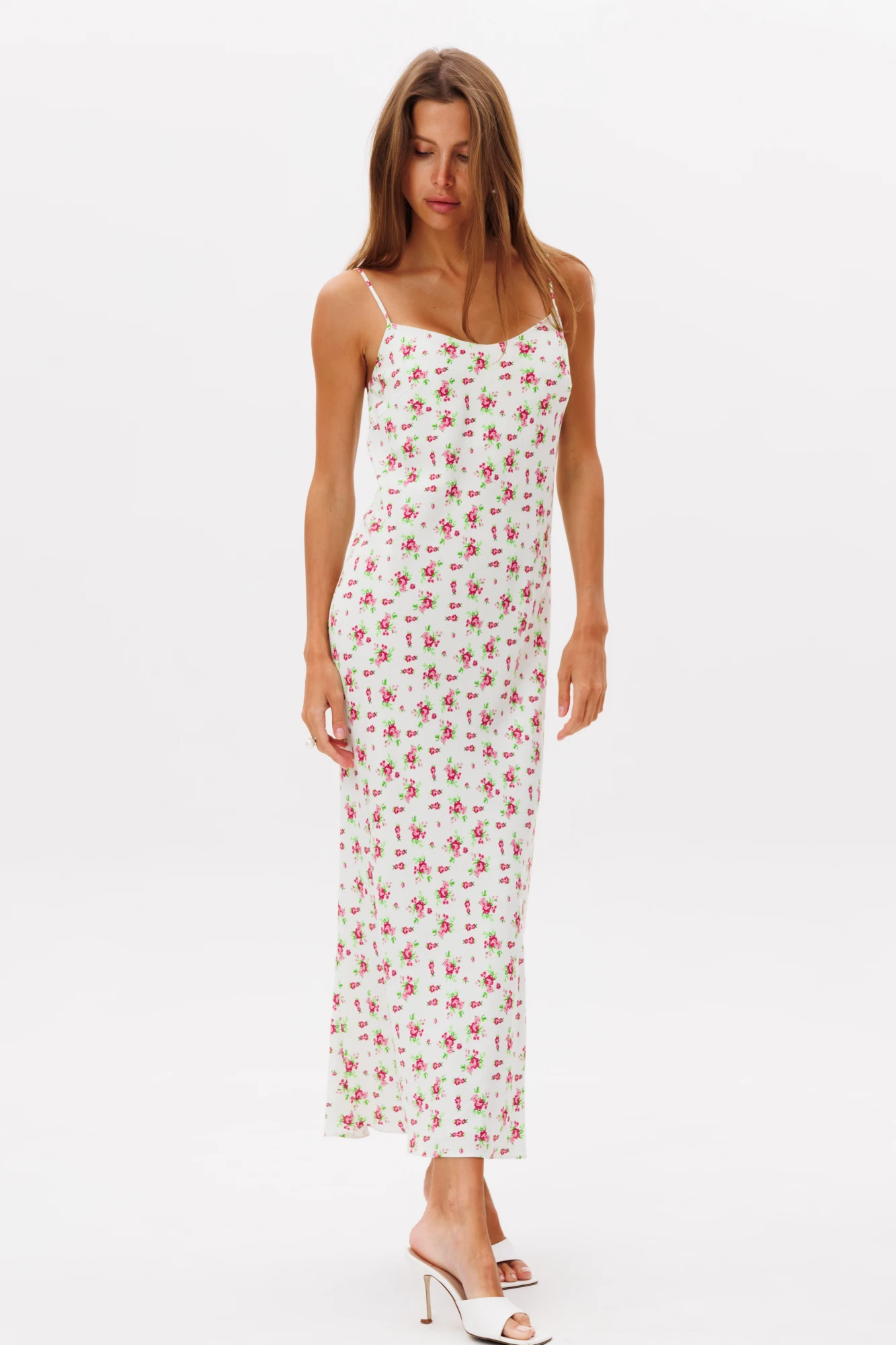 Легкий цветочный сарафан по косой полуприлегающего силуэта,на обтачке по груди, на регулируемых бретелях с помощью фиксаторов, на груди выточки. Сарафан без подкладки. Выполнен из легкой вискозы, не светит. От подмышки до подмышки 42 см, длина 116 см от верхней части лифа без бретели.