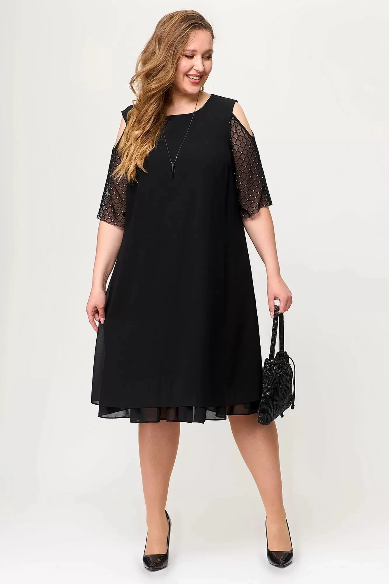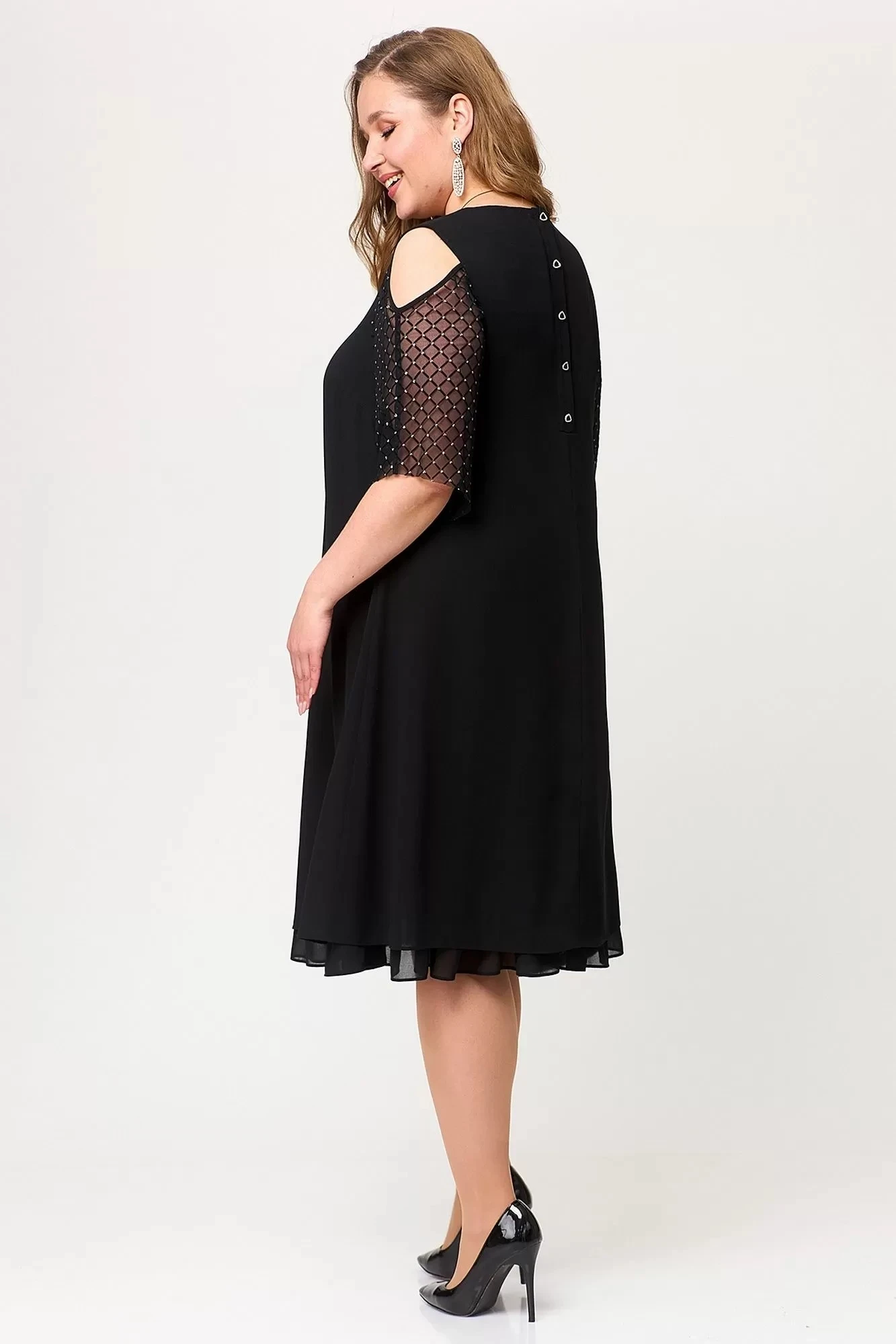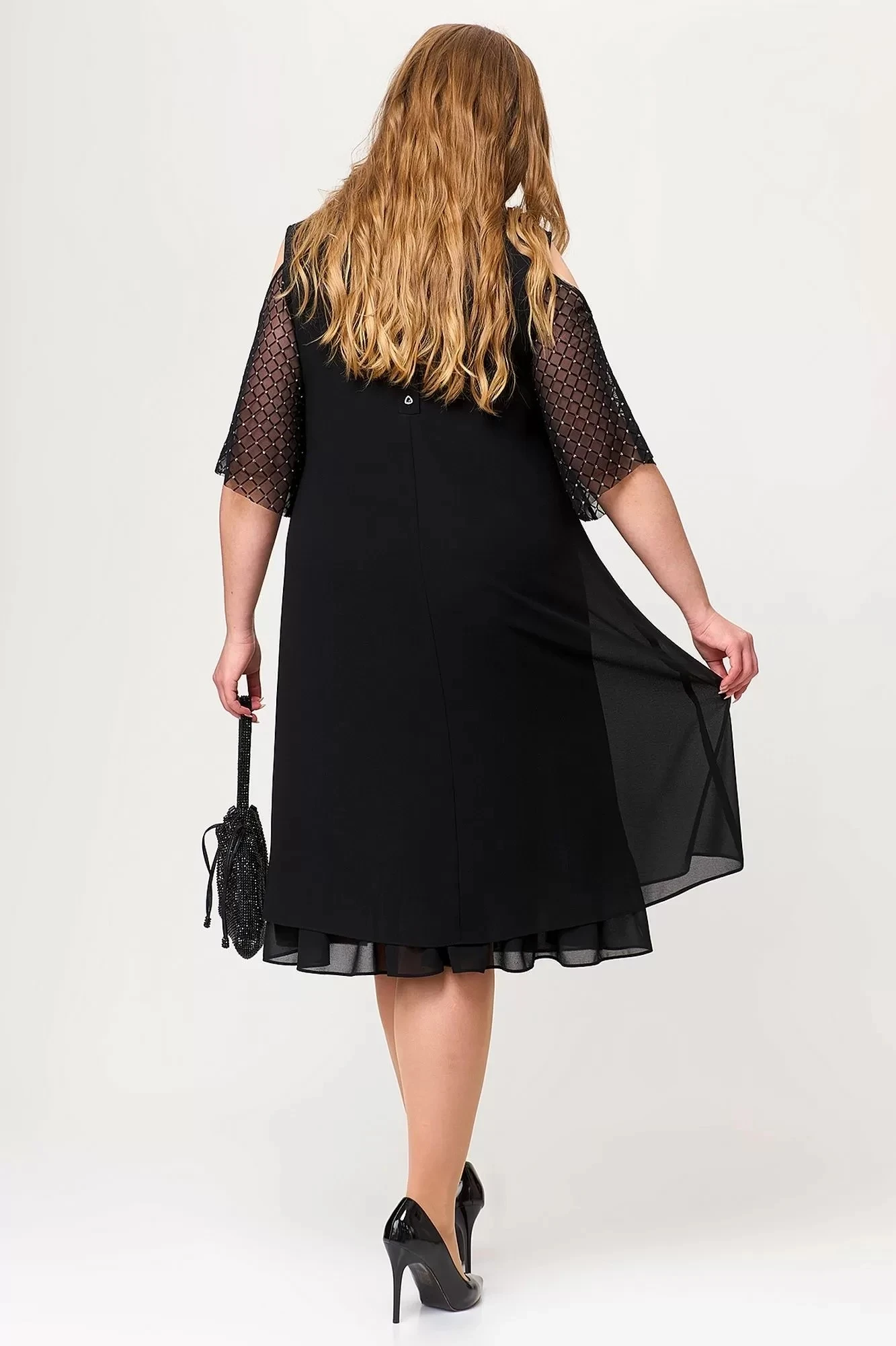 Каждый сезон диктует свои правила, но вне сезона платье из шифона – которое одинаково хорошо подходит, как для повседневности, так и для особых случаев. Платье выполнено из нежного шифона, что создает впечатление легкости и невесомости. Рукава из сетки с декоративным вырезом на плечах создают нежный и изысканный образ. На спинке обработана рабочая планка на петли и пуговицы. По низу платья к подкладке пришит волан. Это вечернее платье – нарядное и праздничное, подчеркивающее изысканный вкус своей обладательницы. Длина платья отлично подчеркнет стройные ножки и привлекательный женский образ. Подойдет как на Новый год, так и будет универсальным на все праздники во все сезоны. Идеальная модель для Вашего гардероба.