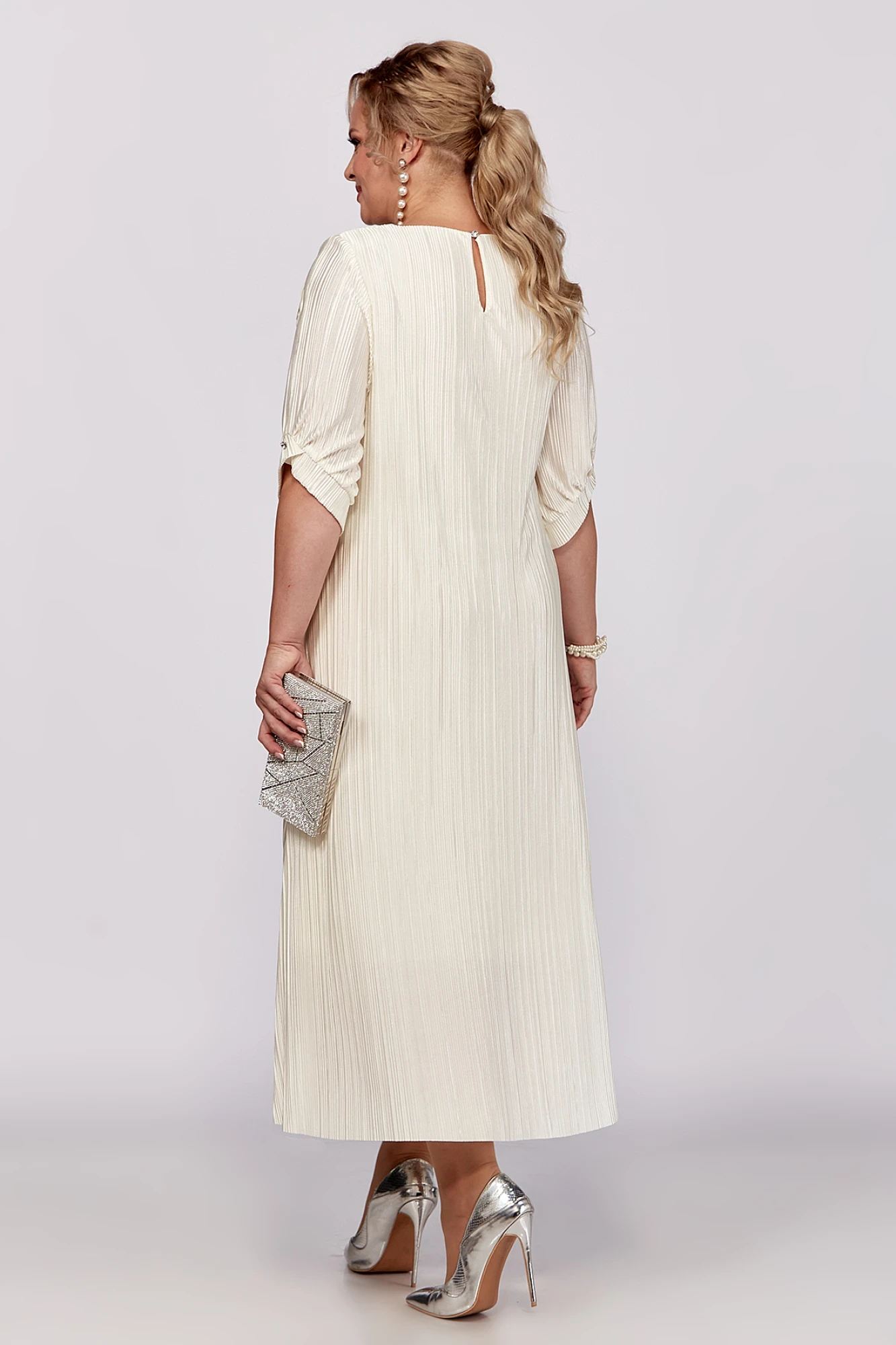 Каждая женщина хочет быть красиво одетой и выглядеть элегантно, ощущая при этом комфорт. Платье из ткани плиссе поможет Вам воплотить задуманное в реальность: оно легкое, удобное в носке, выполнено из мягкой, тонкой и шелковистой ткани, приятной к телу. Легкое винтажное платье с подкладом, обеспечивающим дополнительную защиту от просвечивания, будет уместно в любое время года за счет своей длины макси и свободных рукавов. По спинке, на горловине, обработана капелька на навесную петлю и пуговицу. Рукав втачной, длиной 3/4 с фигурным низом с односторонними складками, с притачной манжетой. Платье декорировано съемным цвкетком. А для тех, кто хочет подчеркнуть линию талии и сделать силуэт слегка облегающим – этого легко добиться, добавив пояс из своего гардероба. Однотонное платье сочетается с различными аксессуарами и обувью, позволяя Вам собрать множество новых уникальных вариантов носки.