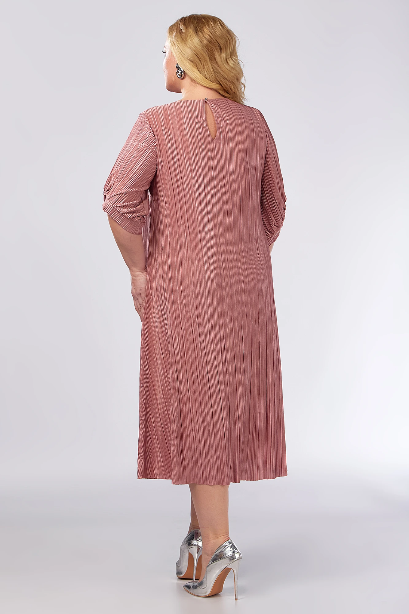 Каждая женщина хочет быть красиво одетой и выглядеть элегантно, ощущая при этом комфорт. Платье из ткани плиссе поможет Вам воплотить задуманное в реальность: оно легкое, удобное в носке, выполнено из мягкой, тонкой и шелковистой ткани, приятной к телу. Легкое винтажное платье с подкладом, обеспечивающим дополнительную защиту от просвечивания, будет уместно в любое время года за счет своей длины миди и свободных рукавов. По спинке, на горловине, обработана капелька на навесную петлю и пуговицу. Рукав втачной, длиной 3/4 с фигурным низом с односторонними складками, с притачной манжетой. Платье декорировано съемным цвкетком. А для тех, кто хочет подчеркнуть линию талии и сделать силуэт слегка облегающим – этого легко добиться, добавив пояс из своего гардероба. Однотонное платье сочетается с различными аксессуарами и обувью, позволяя Вам собрать множество новых уникальных вариантов носки. Этот наряд будет отличным выбором для мамы или подружек невесты на свадьбу, ведь он сочетает в себе элементы винтажного стиля с современными модными трендами.