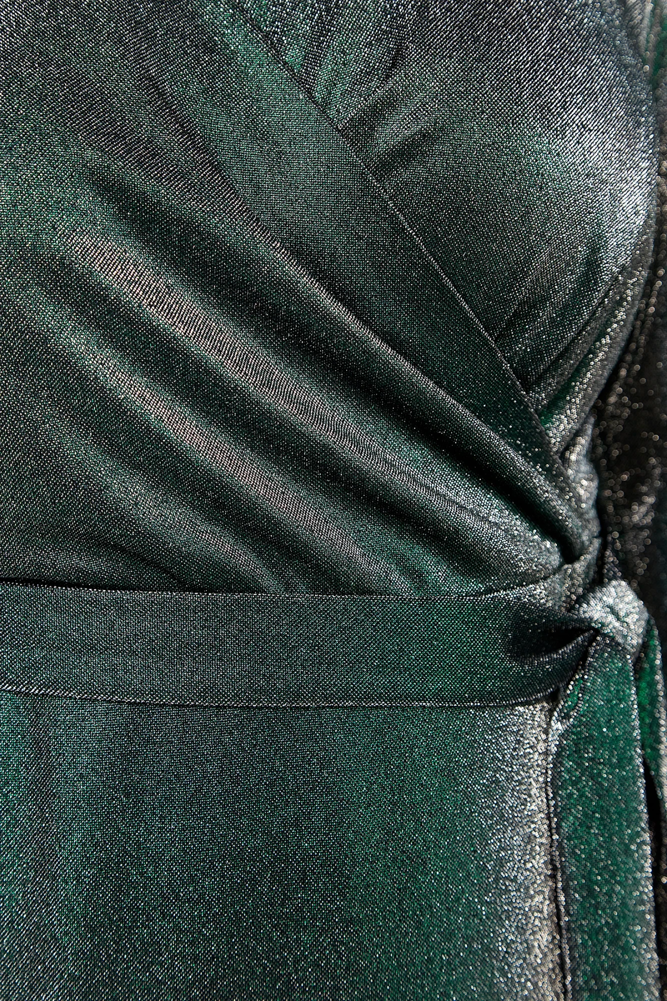 Платье больших размеров выполнено из качественного трикотажного полотна с приятным блеском, на трикотажной подкладке. Блеск не осыпается!!!!! Ткань мягкая, очень приятная к телу. Верхняя часть платья переда отрезная по линии талии, спинка без подреза. Лиф переда с эффектным запахом и рельефным бочком. Красивый, оригинальный разрез по переду придает наряду некоторую кокетливость, превращая строгое платье в милое и молодежное секси. Спинка со средним швом. Рукав втачной, длина ¾. Платье со съёмным поясом. Вечернее платье подойдет на новый год, вечеринку, в клуб, на свадьбу и любой другой праздник.