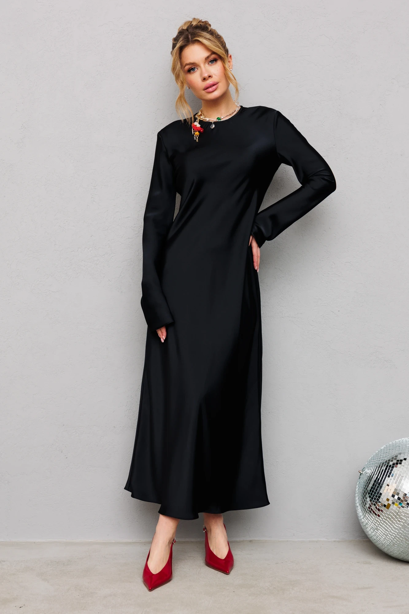 Это настоящая жемчужина в мире моды - платье, которое просто обязано быть в гардеробе каждой стильной женщины. Его удивительный силуэт добавит изысканности и элегантности любому образу. Макси - это не просто длина, это настоящий признак изысканности и загадочности. Длинное атласное как шелк платье украсит ваш образ, подчеркивая вашу женственность. Одним из важных изюминок этого платья являются его расклешенные рукава. И оно также идеально подходит для особых случаев, будь то вечерний ресторанный ужин или праздничное мероприятие. Это платье изготовлено из качественной ткани, которая приятна к телу и добавляет лоск вашему силуэту. Оно имеет полусвободный крой, который заключает элегантное настроение и добавляет удобства каждому движению. Сияющий черный цвет этого платья несет с собой атмосферу страсти и романтики. Это редкость найти такой оттенок, который способен зажечь сердца окружающих и превратить каждое ваше появление в незабываемое шоу. Окунитесь в море позитивных эмоций с нашим комплектом от «Анастасия»
