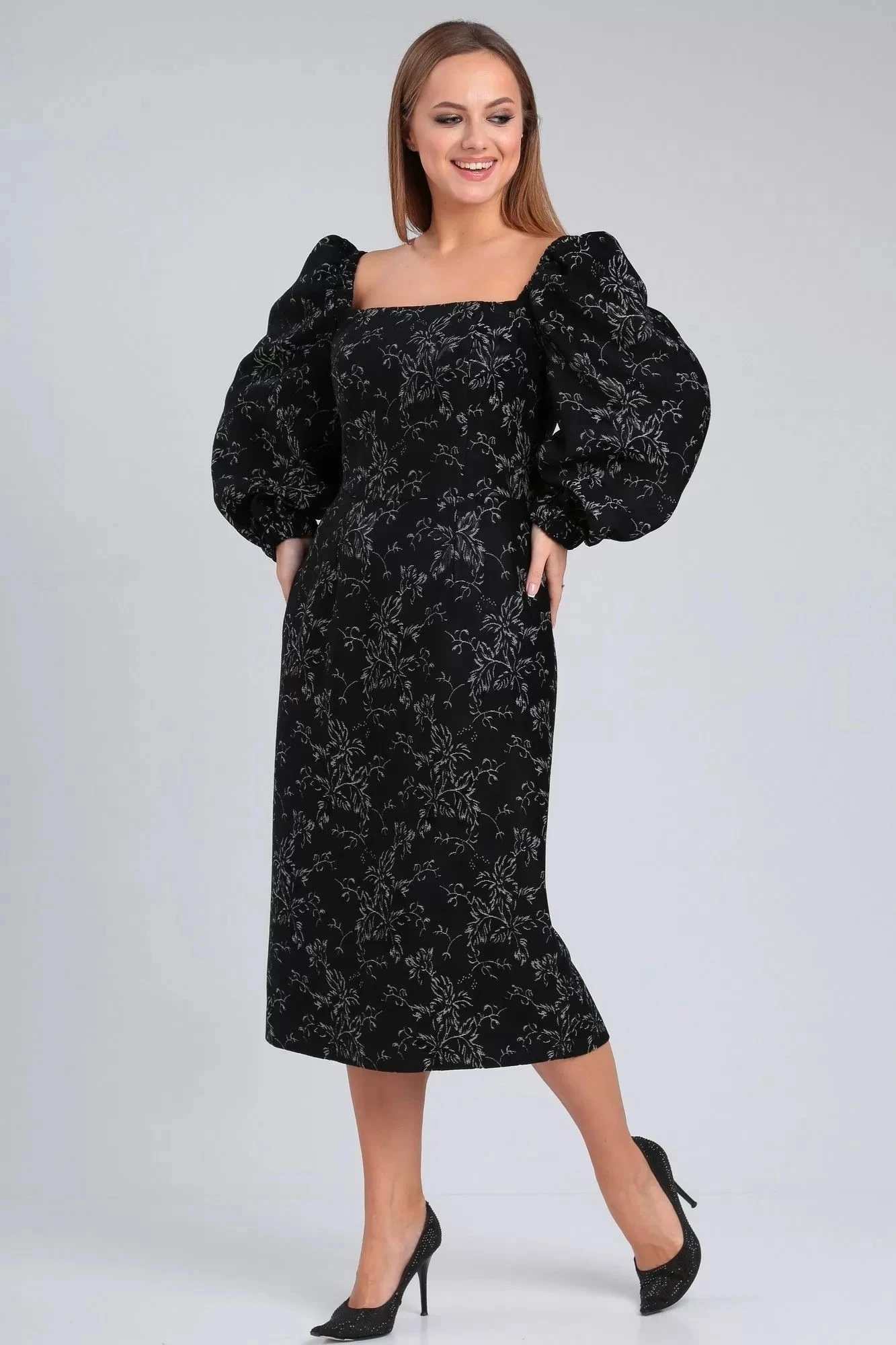 "Шикарное платье поможет Вам выглядеть сногсшибательно на любой вечеринке или торжестве. Облегающее платье с модными объемными рукавами выгодно подчеркнет достоинства фигуры и вытянет силуэт.