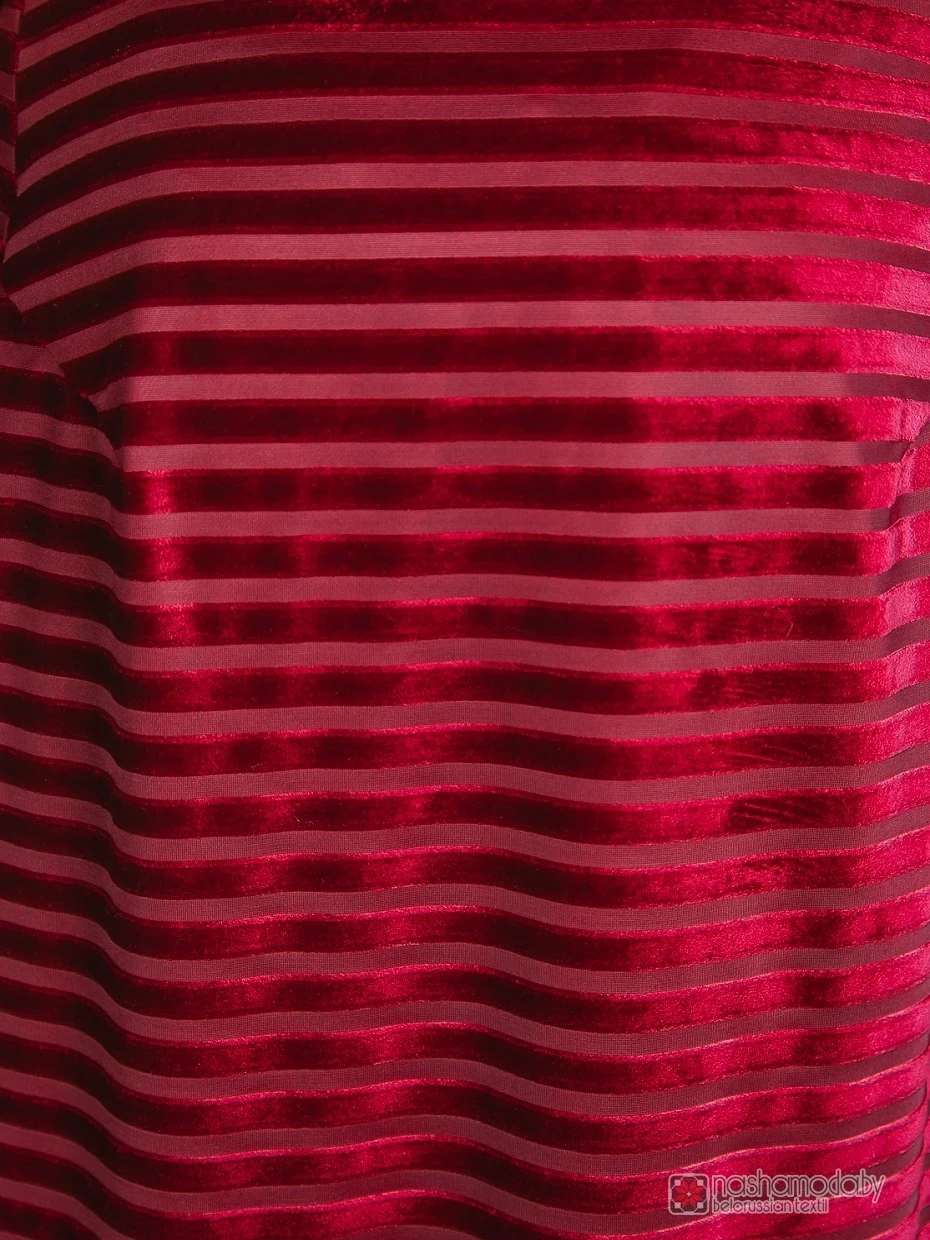 Изысканное нарядное платье насыщенного бордового цвета. Платье длиной миди, с рукавом 3/4 и легким струящимся воланом. Платье прямого силуэта с фигурной горловиной и брошью. В качестве застежки пуговица по спинке. Платье элегантное, комфортное прекрасно подойдет для праздничного выхода.