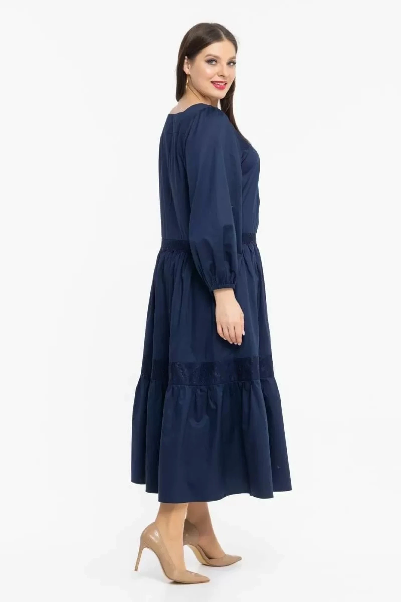 Роскошное платье свободного силуэта, украшено объемными рукавами и кружевным воротником и с элементами кружева по юбке. Рукав длиной 7/8 на резинке снизу, благодаря которой можно свободно регулировать высоту рукава. Прекрасно подойдет обладательнице любой фигуры и сочетается с любой обувью.