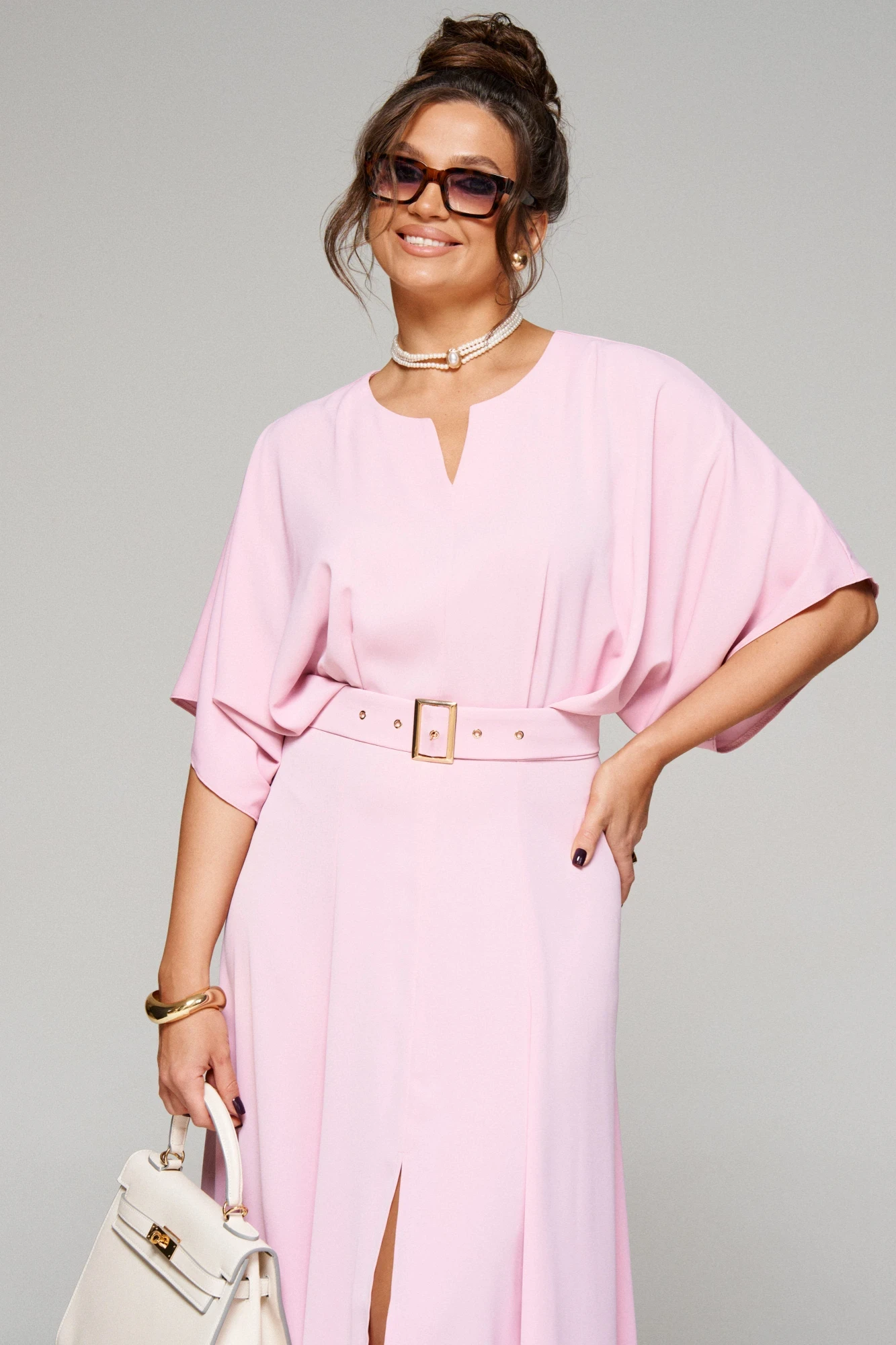 В комплекте к платью прилагается широкий пояс на пряжке.