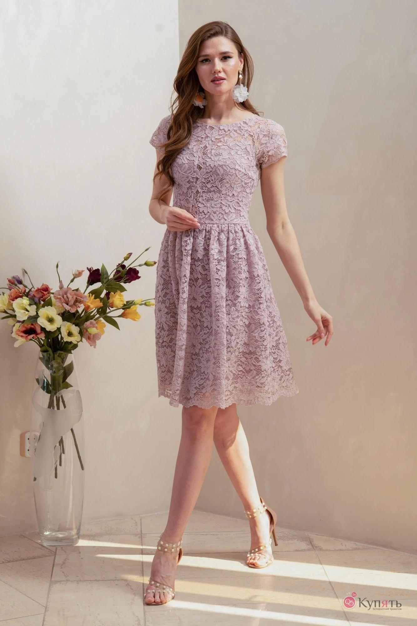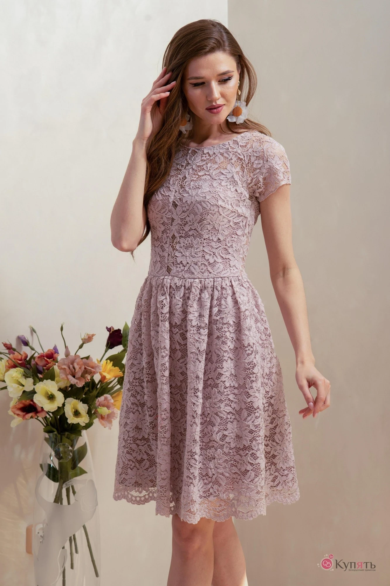 Вечернее кружевное платье Condra 4318 бежевый-розовый