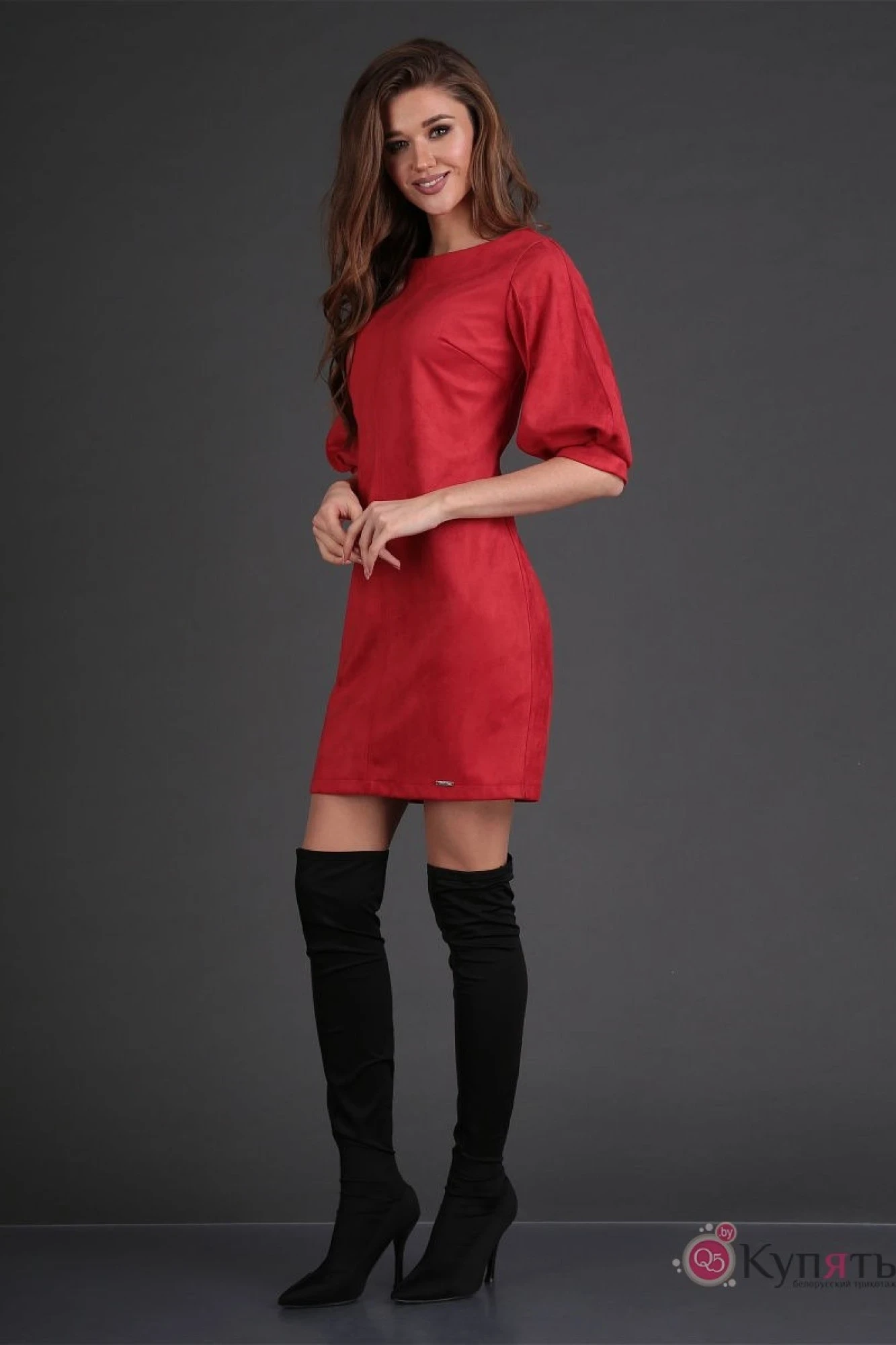 Платье выполнено из трикотажного полотна (эко-замши).Полуприлигающего силуэта, рукав 3/4, молния сзади.