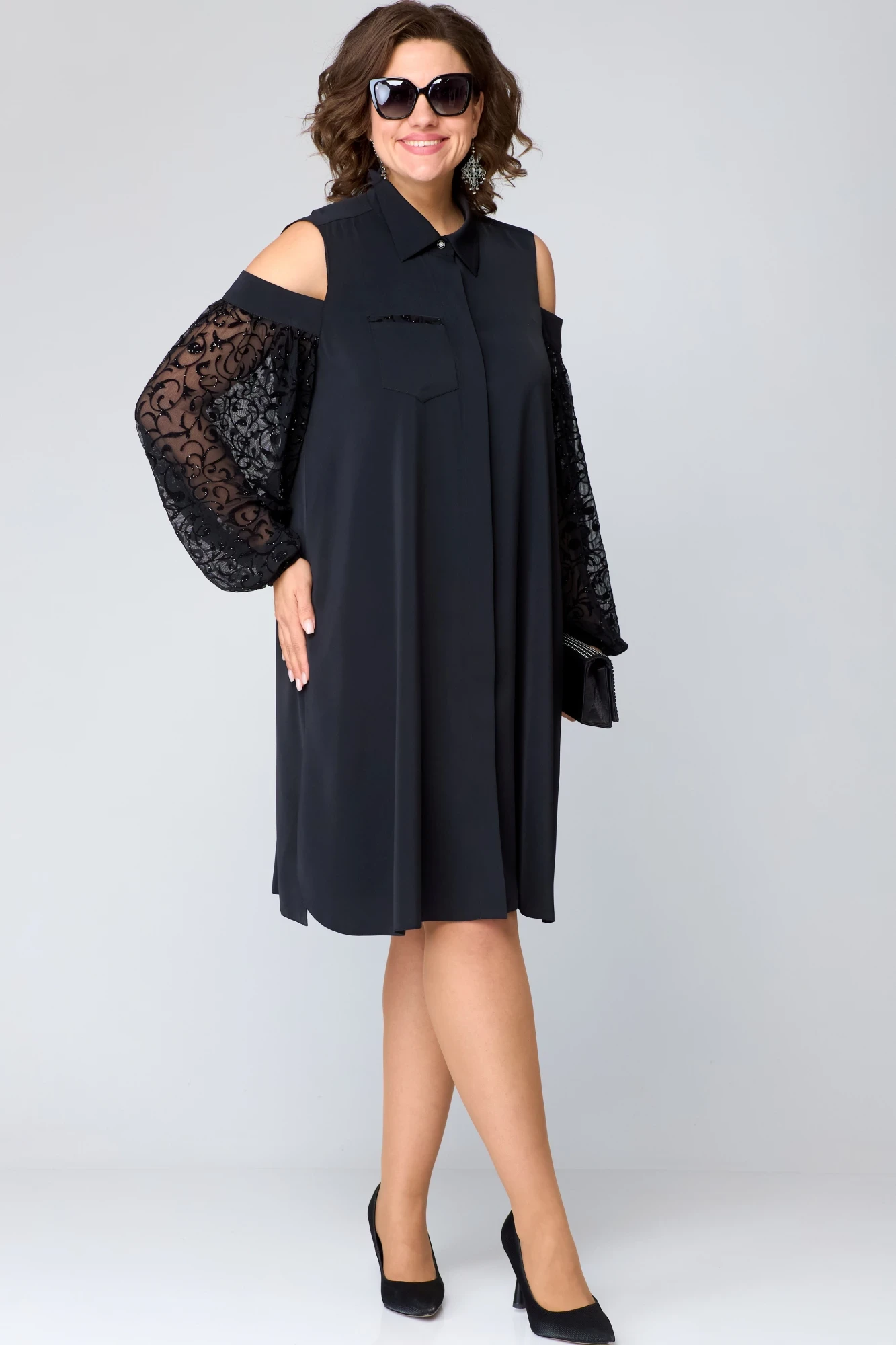 Вечернее платье с сеткой EVA GRANT 7216А черный + кружево