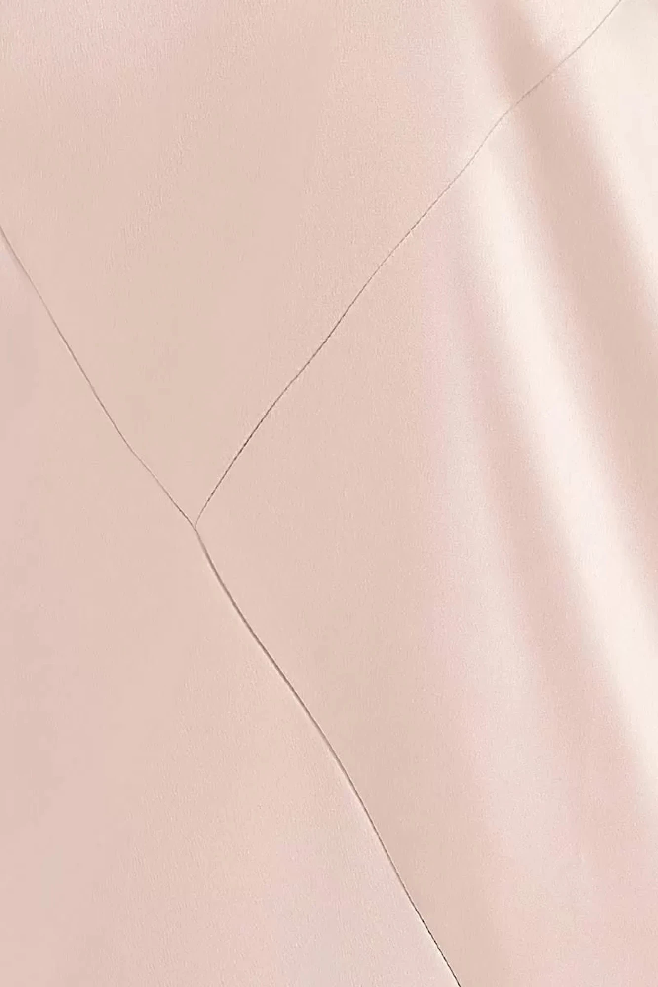 Платье свободного силуэта длины до колена выполнено из плотного шёлк-сатина, который не просвечивает и держит форму за счет конструктивных линий. Платье с целькроенными рукавами и немного углубленным вырезом проймы, спинка со средним швом и кокеткой. Уход: - деликатная стирка при температуре не выше 30 градусов; - гладить изделие можно при небольшой температуре с изнаночной стороны;- сушить далеко от отопительных приборов.