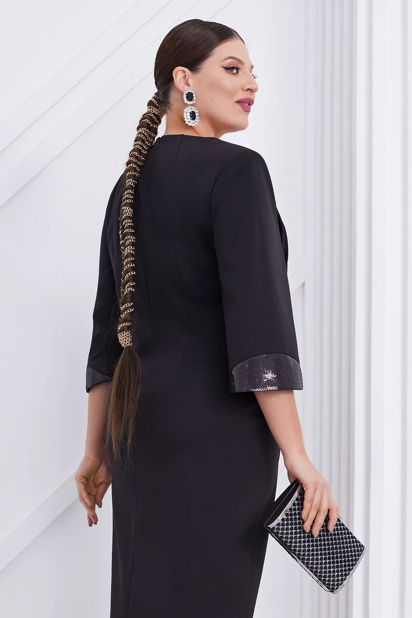 Платье зрительно заужает фигуру вытягивает силуэт и очень сильно стройнит современный вариант «a little black dress» для женщин с роскошными формами и утонченным чувством вкуса.