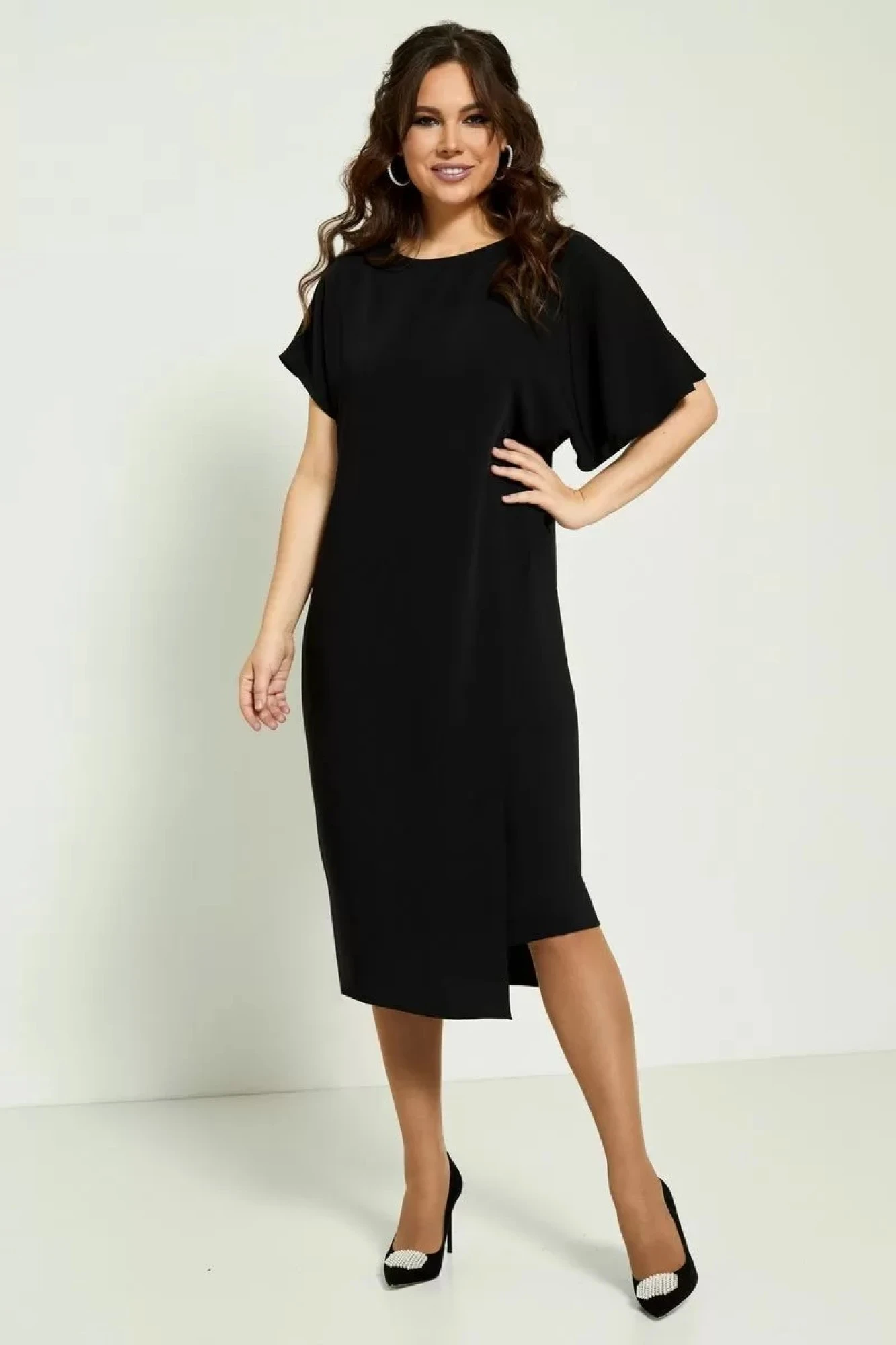 Элегантное платье свободного силуэта с ассиметричными рукавами. Выполнено из струящейся, приятной к телу плательной ткани. Застежка по спинке на потайную молнию.