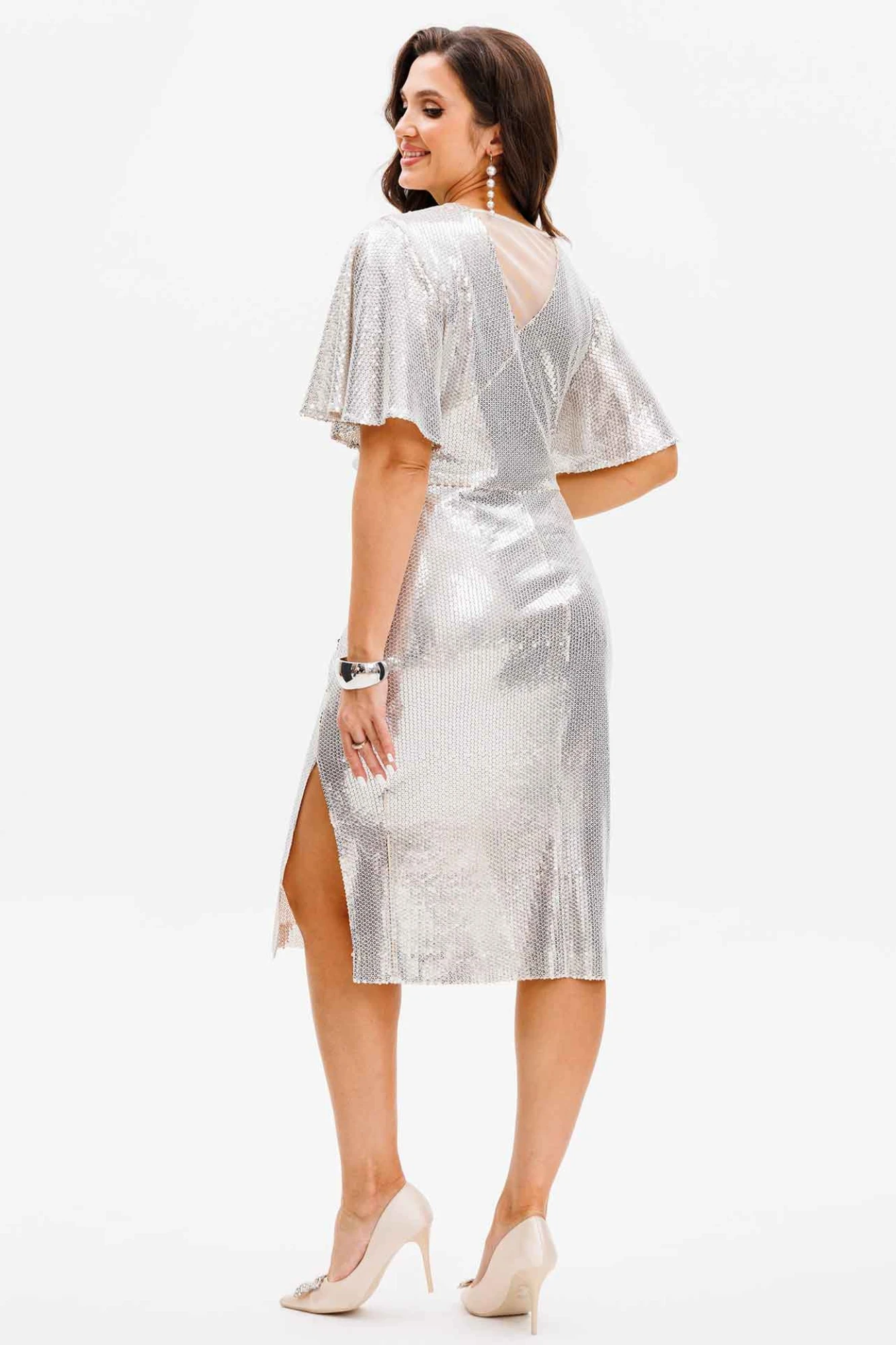 Вечернее платье с пайетками MisLana 1045 серебро (пайетки)