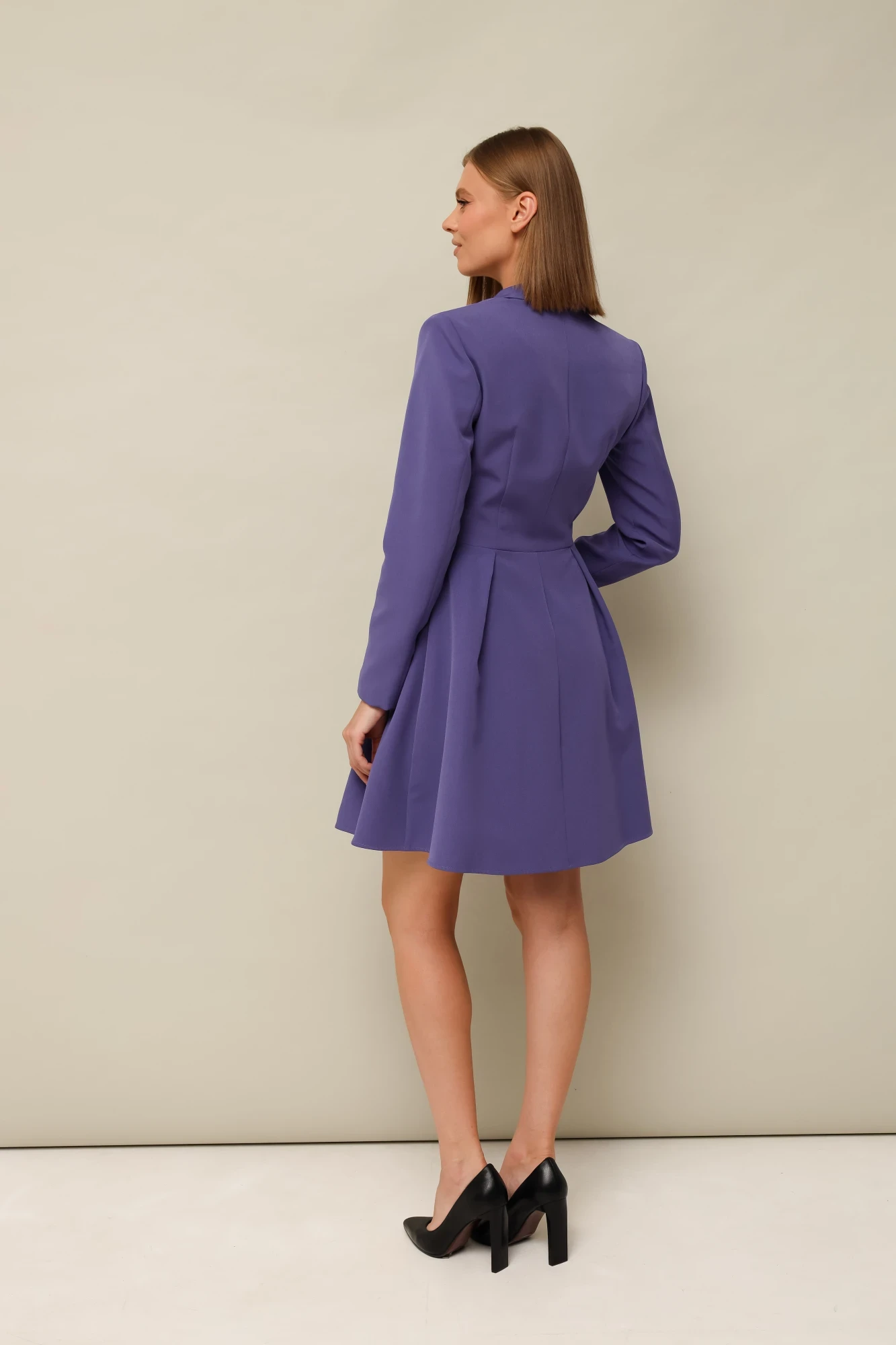 Платье полуприлегающего силуэта,на запах, застегивается спереди на пуговицы. Сзади талиевые вытачки. Данное платье отлично "сядет" на любую фигуру, подчеркнет ее силуэт, добавит в образ элегантность и женственность.