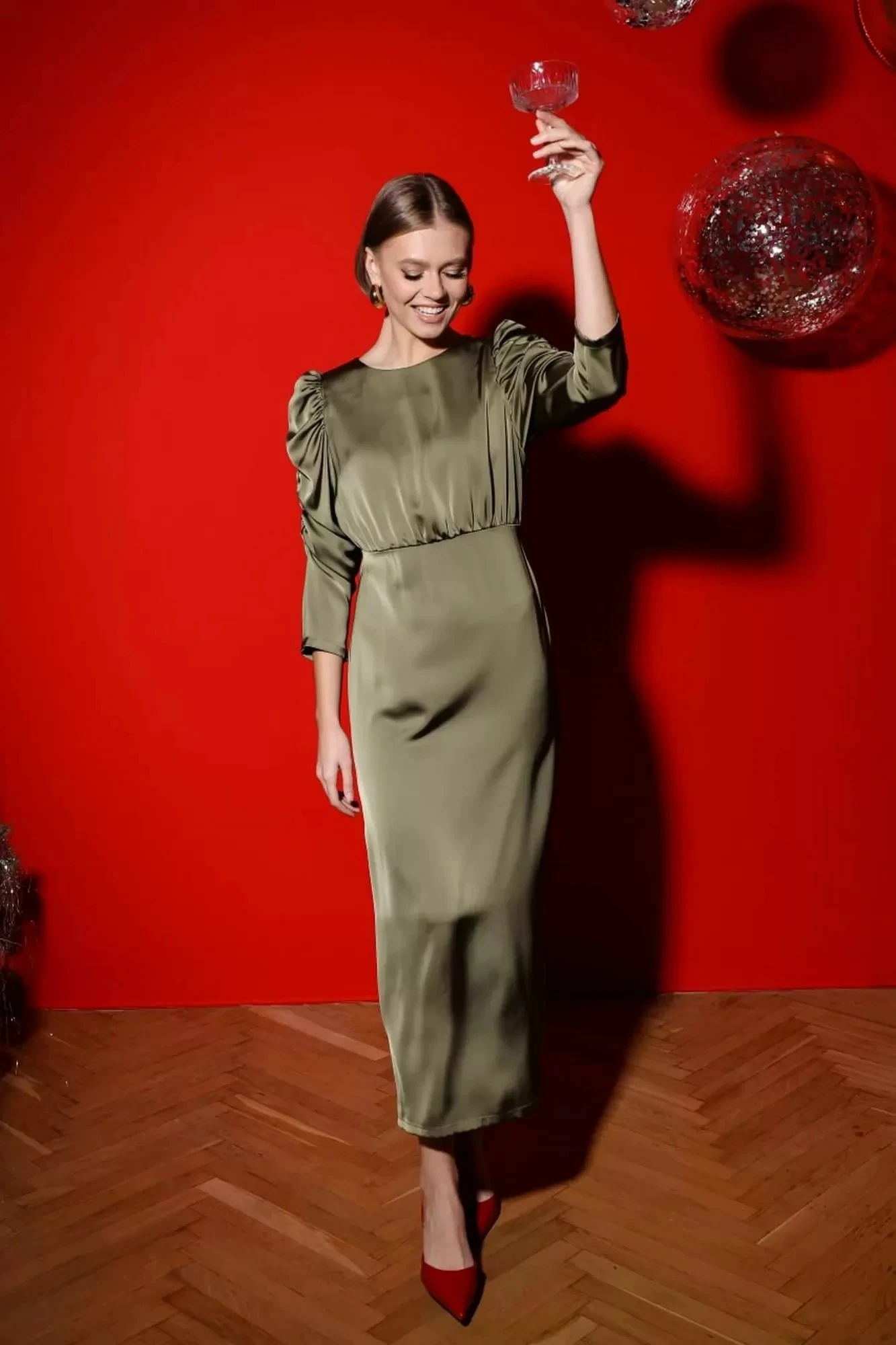 Элегантное платье из сатина, отрезное по