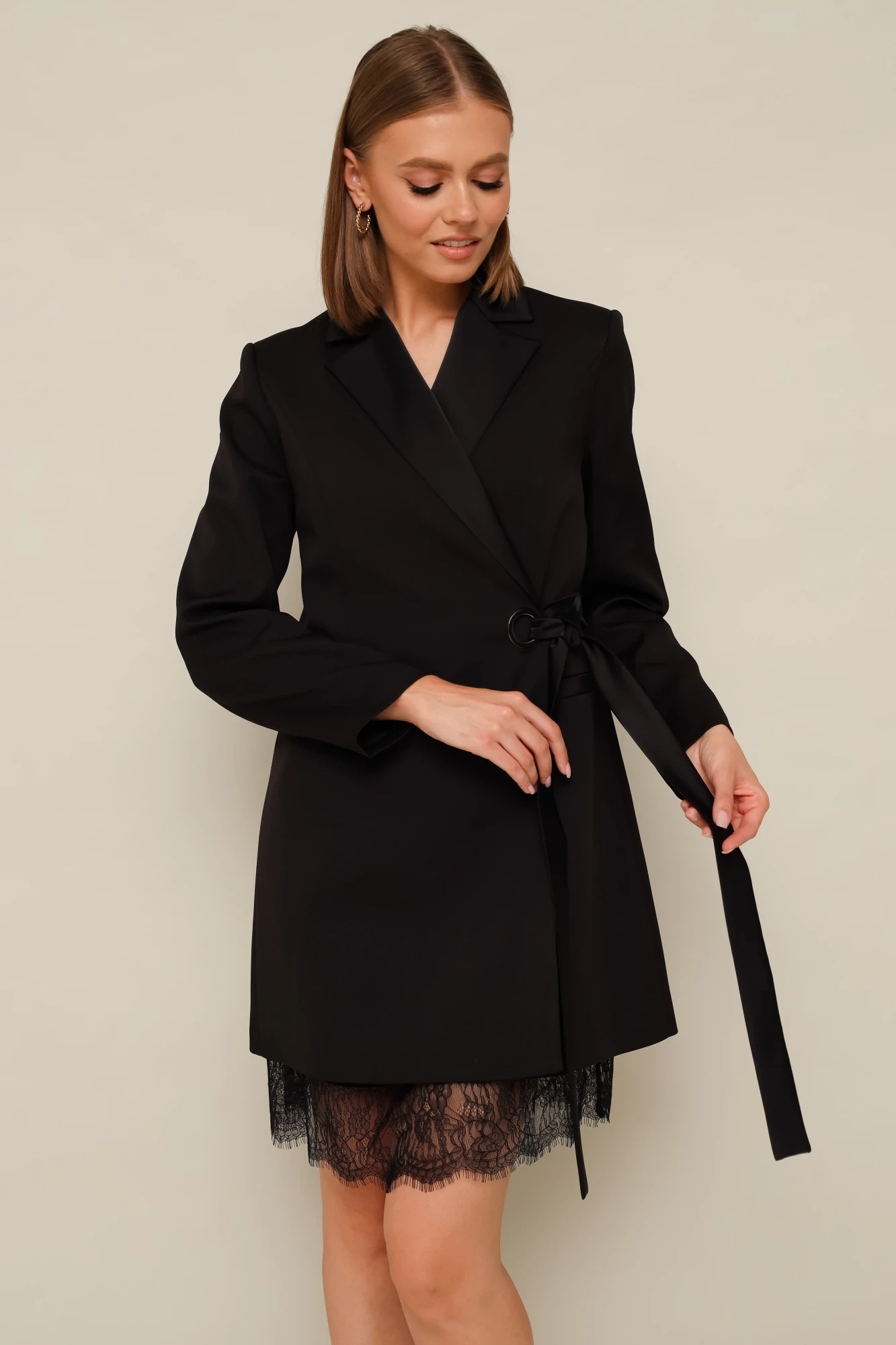 Платье выполнено из костюмно-плательной ткани. Воротник пиджачного
