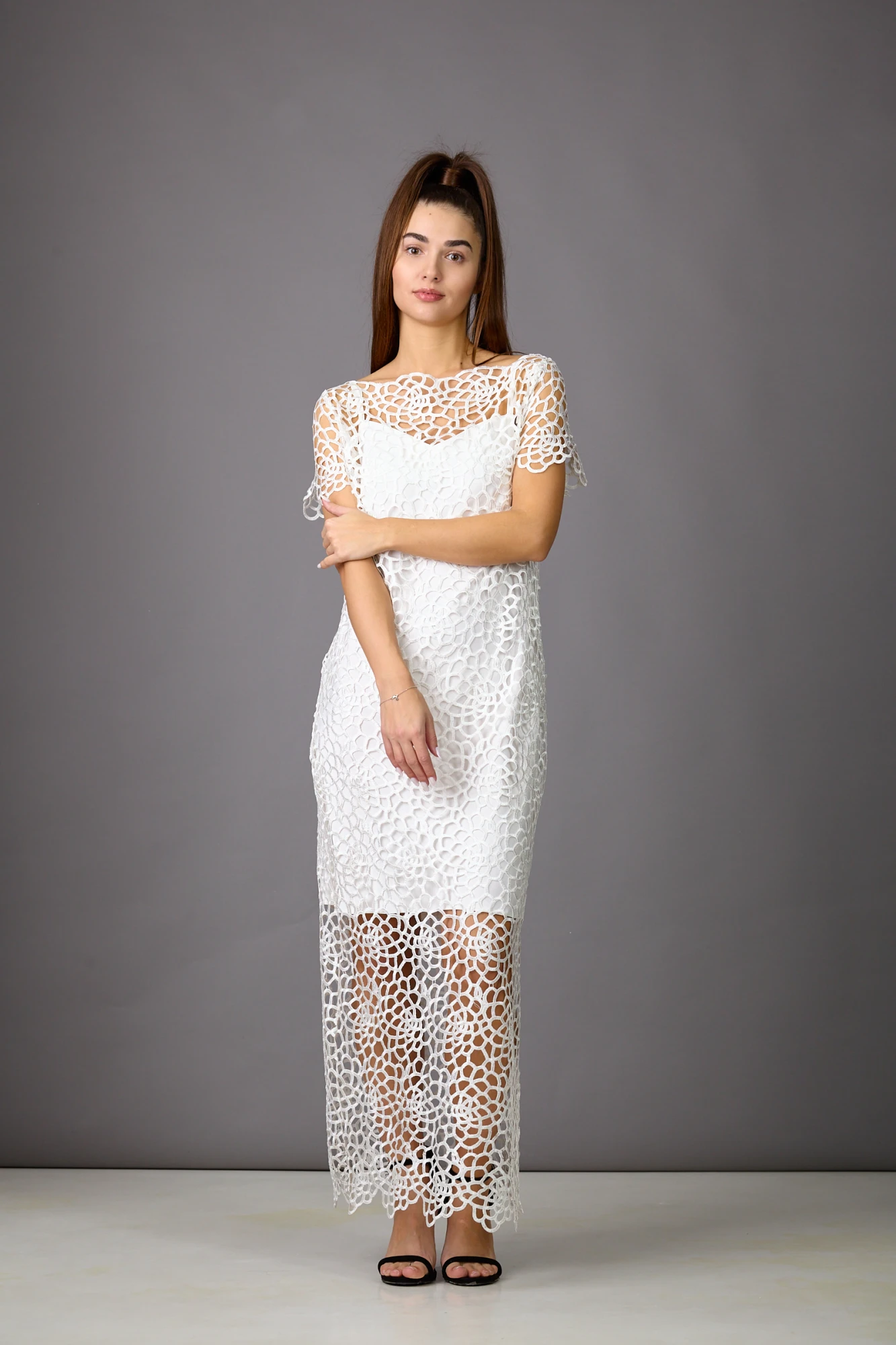 Кружево-100% ПЭ. Нижнее платье-97% ПЭ, 3% спандекс