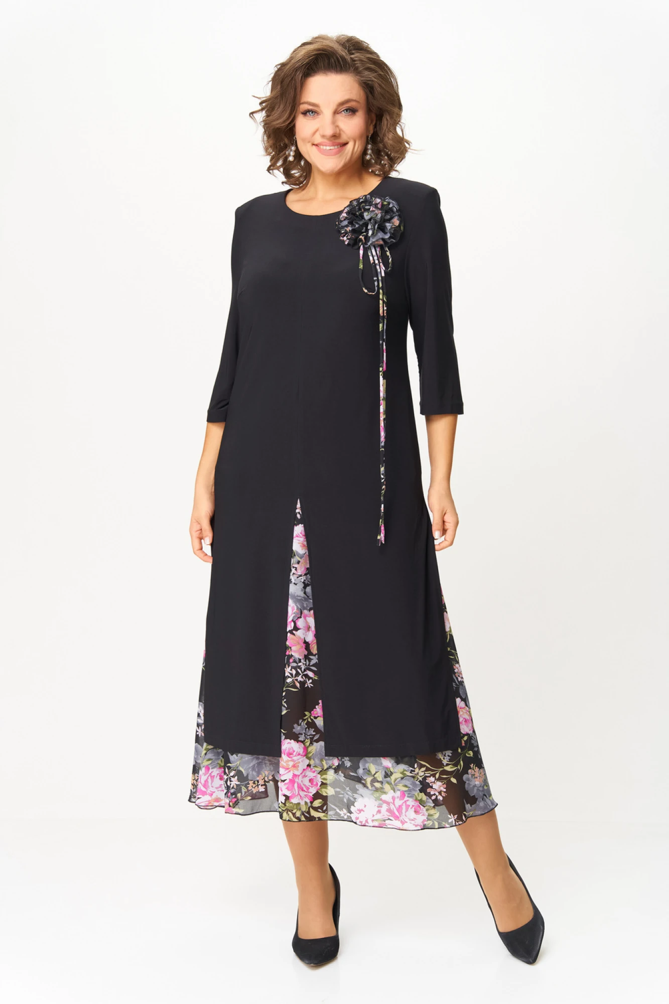 Платье Svetlana-Style 1958 черный+розовые цветы