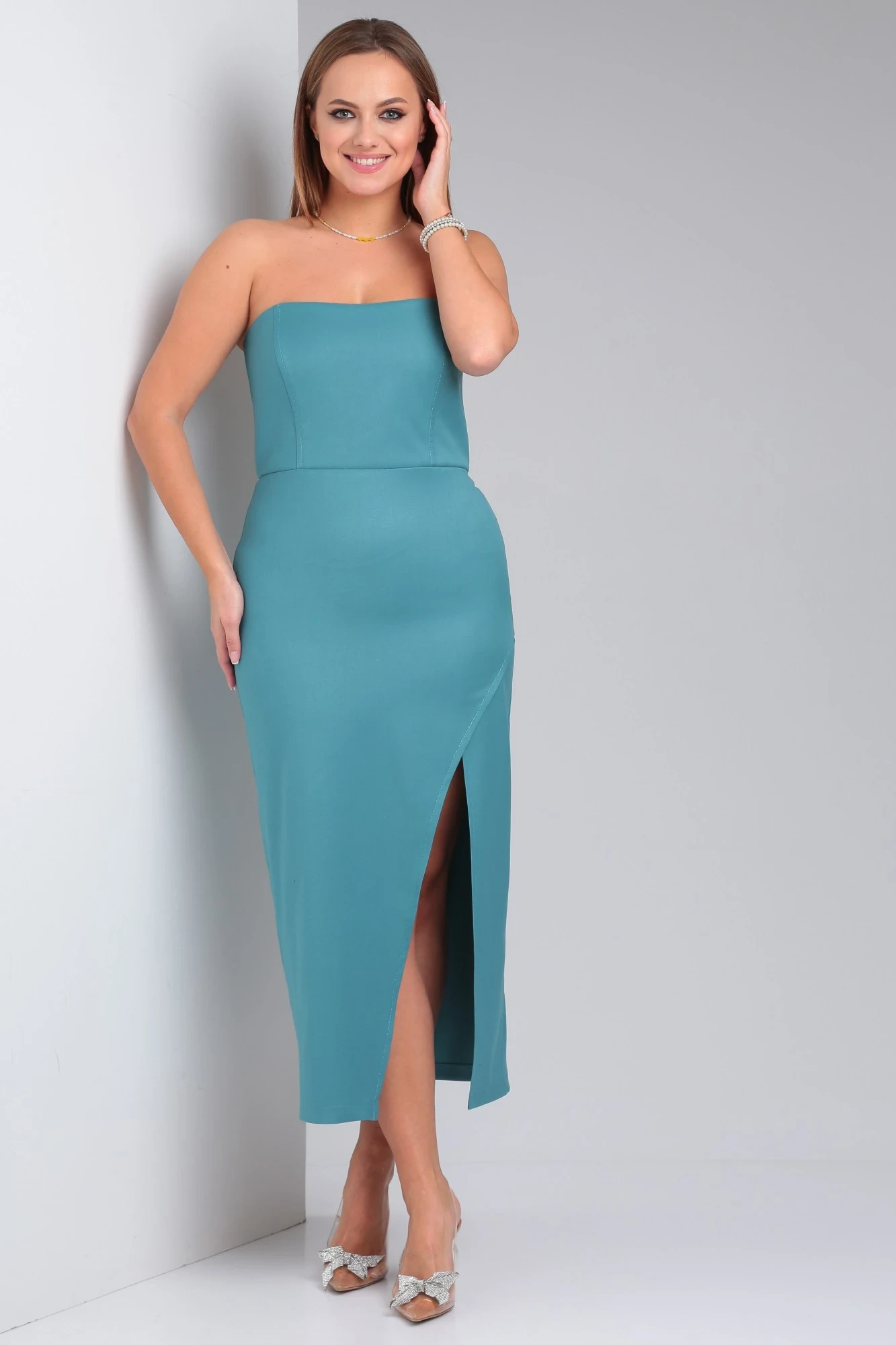 Вечернее платье с открытыми плечами YOUR SIZE 2213 Бледно-бирюзовый