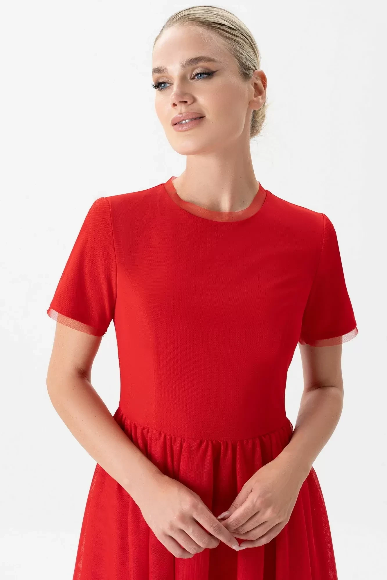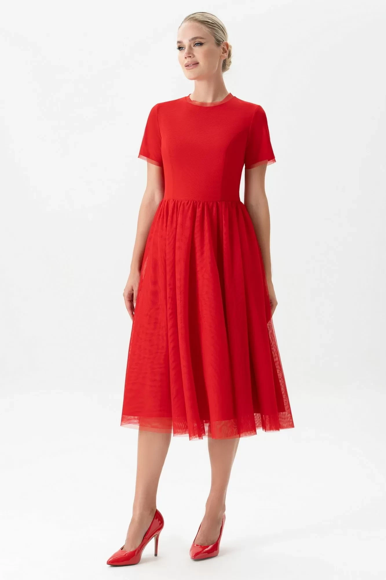 Длина платья по среднему шву спинки – 118,0 см (±2,0 см), Длина платья по среднему шву спинки (до линии талии) – 38,5 см (±2,0 см), Ширина на уровне глубины проймы – 54,0 см (±1,0 см), Ширина на уровне линии талии – 47,5 см (±1,0 см), Ширина на уровне линии бедра – 72,0 см (±1,0 см), Длина рукава – 19,0 см (±1,0 см), Ширина рукава внизу – 20,0 см (±1,0 см), Длина плеча платья – 10,2 см (±0,5 см).
