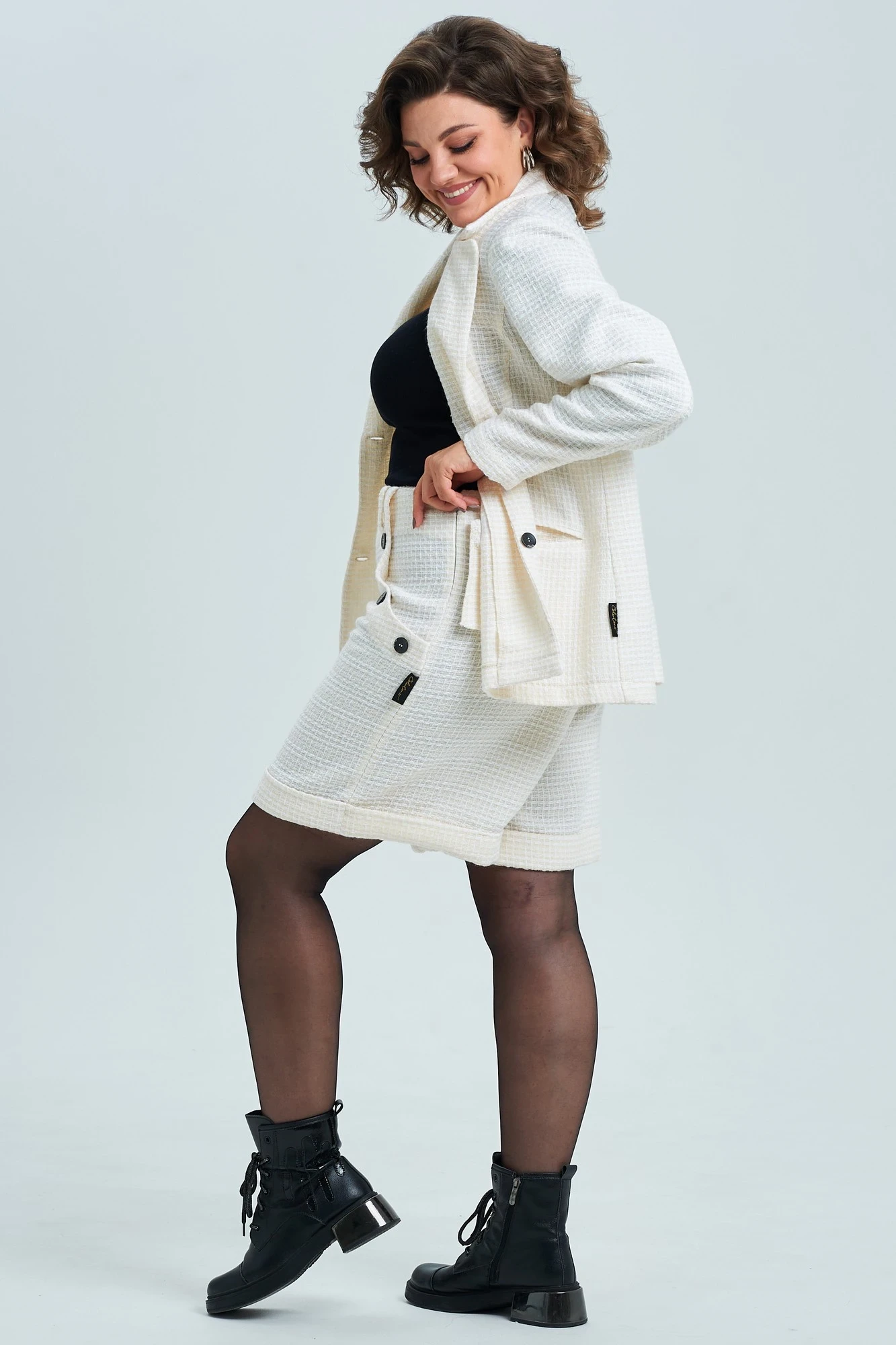 Наши шорты из шерстяной ткани будут комфортны для использования осенью и зимой, актуальны для офисного стиля. На фото представлены с жакетом 6007. Оба изделия можно купить комплектом 6005.
