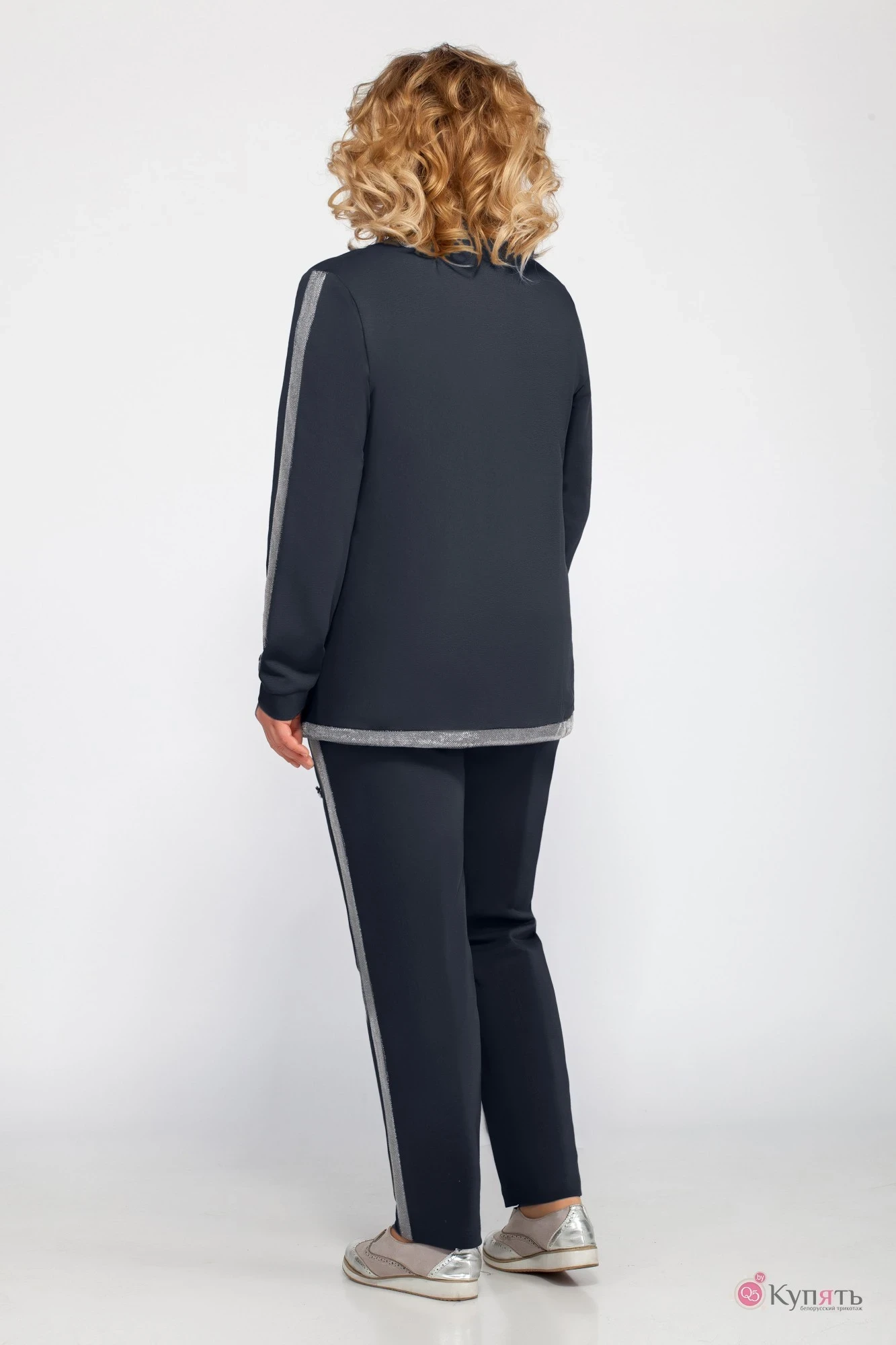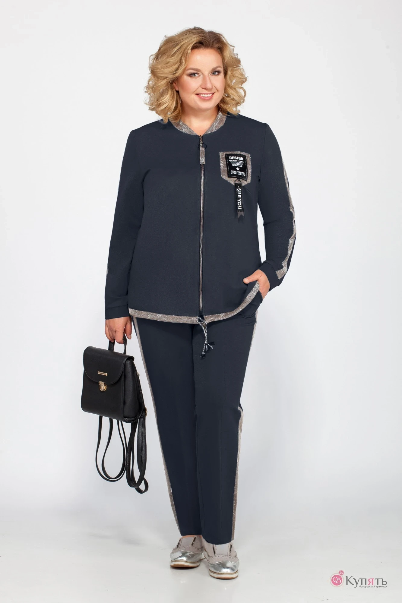 Стильный женский костюм, состоит из блузона и брюк. Костюм выполнен в спортивном стиле.