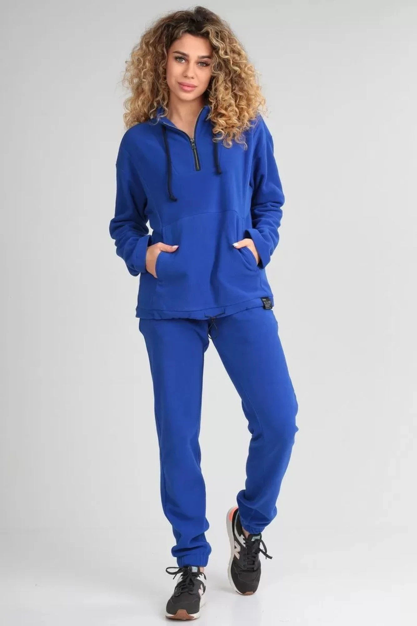 Костюм унисекс выполнен из мягкого и теплого флиса. Брюки с боковыми карманами, по поясу и снизу на резинке. Джемпер прямого силуэта, длиной до линии бедер, по низу притачная планка, которая регулируется фиксатором. По переду джемпера подрезная деталь манишка, застегивающаяся на металлическую молнию, воротник-стойка на шнуровке. Нижняя подрезная деталь с карманом кенгуру. Рукав длинный, плечевой шов спущен. В этом костюме Вам будет тепло и уютно.