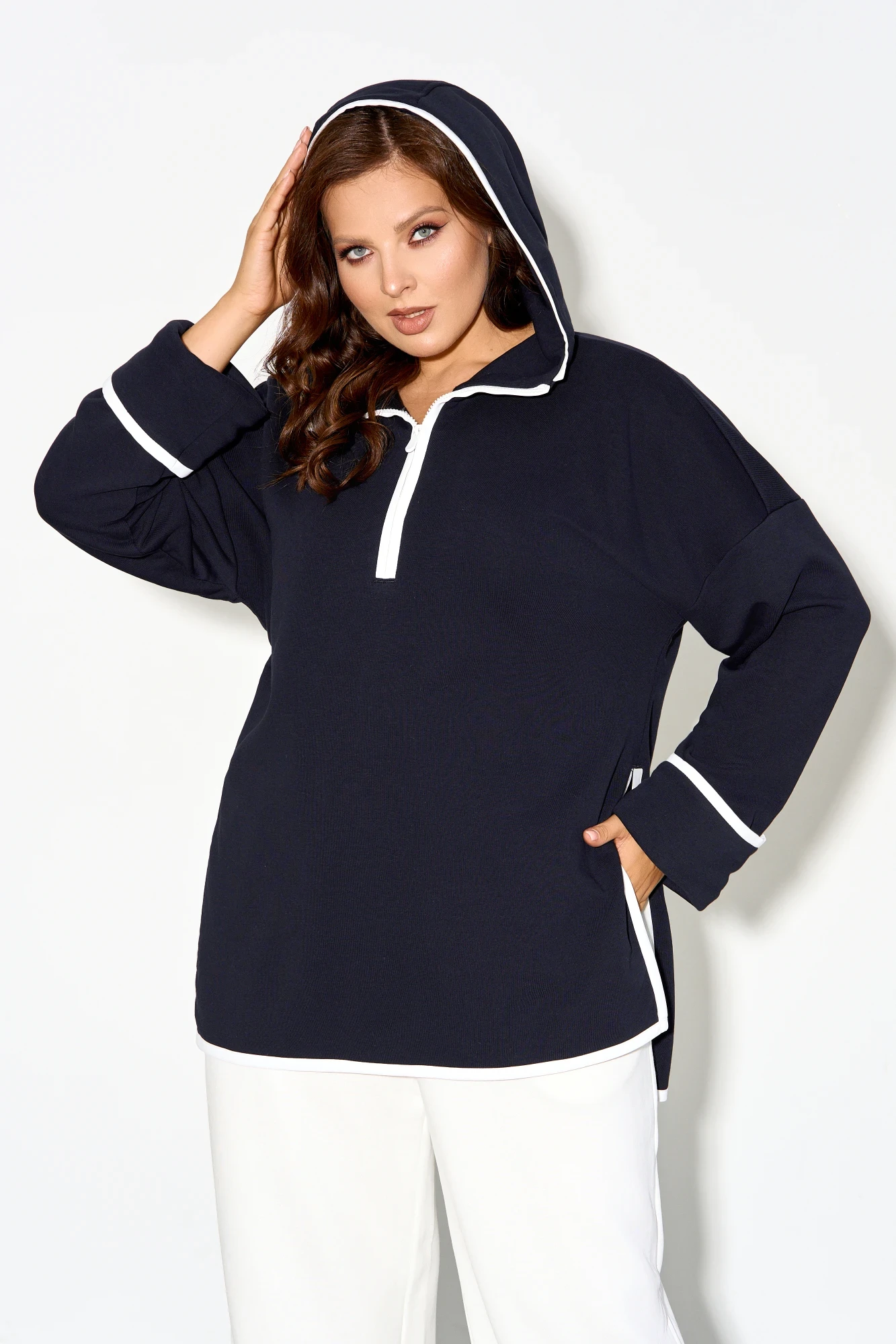 "Стильный женский спортивный костюм свободного силуэта, состоящий из худи и брюк, выполнен из футера 3-х нитки класса пенье. Худи с капюшоном, функциональной молнией по переду и декоративными разрезами по боковым швам; рукава втачные со спущенной линией плеча. По низу манжет, капюшона и линии втачивания молнии вставлена тесьма белого цвета. Брюки свободного силуэта с притачным поясом полностью на резинке (резинка закреплена и не будет перекручиваться) и функциональными карманами в боковых швах. Костюм полностью соответвует заявленному размеру. Пожалуйста, пользуйтесь таблицей обмеров готового изделия. Контрастные ткани устойчивы к перекрашиванию благодаря современным технологиям, что предотвращает смешивание красок, сохраняя цвета ткани даже при совместной стирке. Уход за натуральными тканями: - стирка при низких температурах и использование мягких моющих средств для сохранения структуры и мягкости.