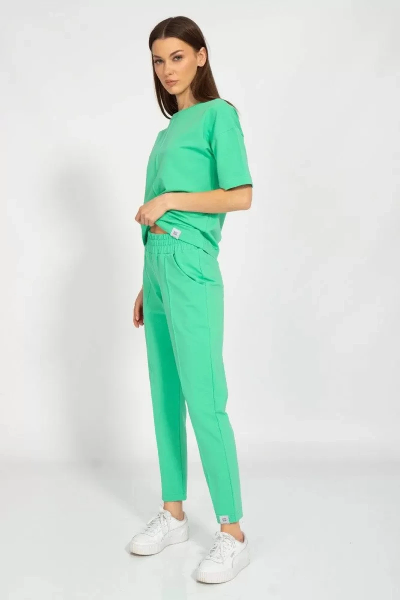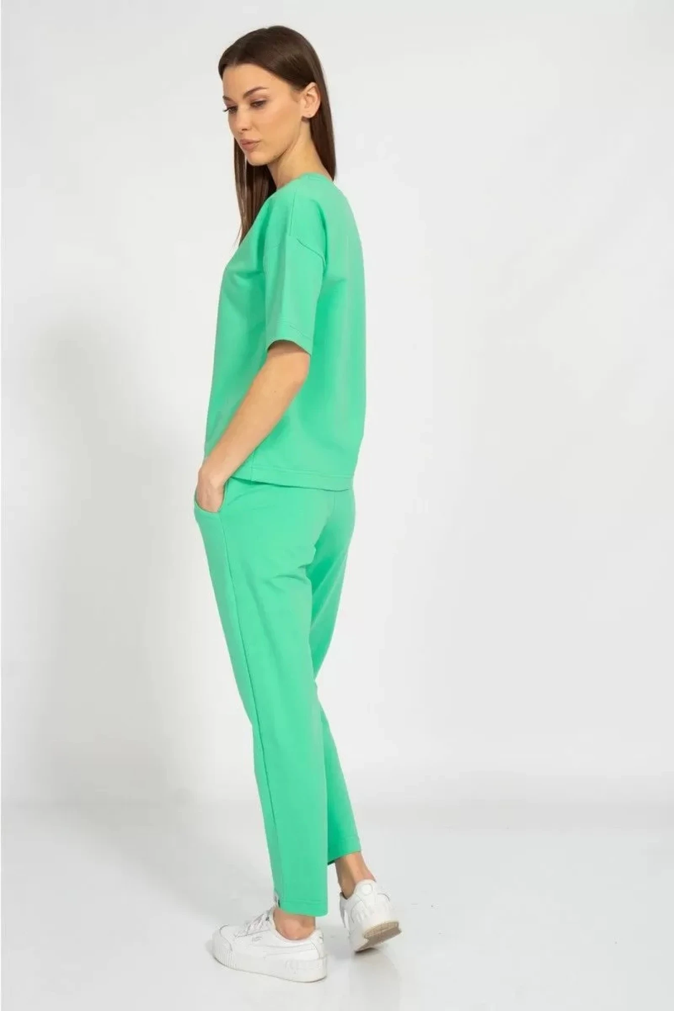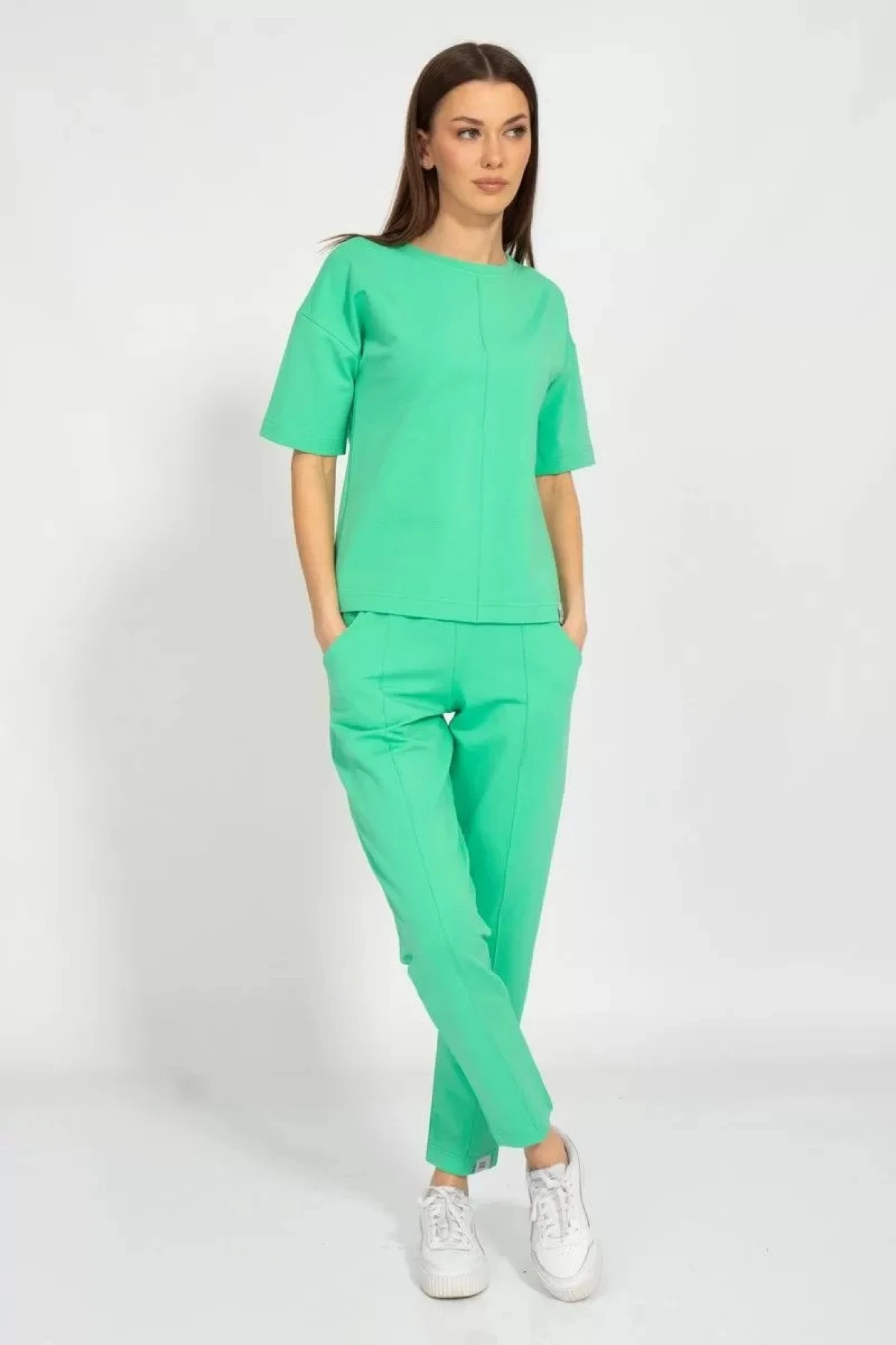 Костюм с брюками средней посадки с отделкой в виде канта по деталям переда и карманами в боковых швах и классическим джемпером с отделкой по переду. Ткань 2-х ниточный футер с изнанкой из хлопка, качество Пенье, плотность 235 г.м2